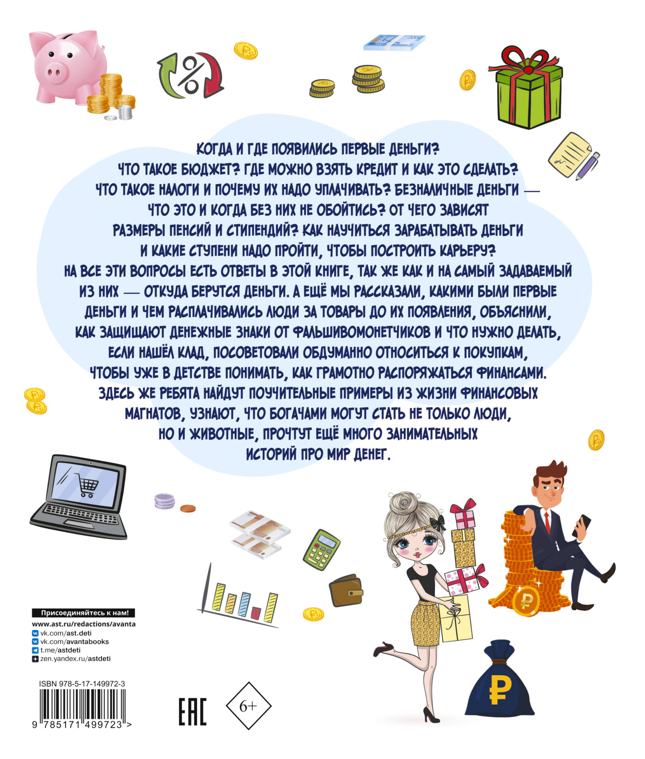 Дорогие родители! Если ваш ребёнок задаёт очень много вопросов, среди которых нередко встречаются достаточно щекотливые, не пытайтесь уйти от ответа. В таких случаях, даже когда ответить бывает очень сложно, обязательно поговорите с ним. Лучше научить своего ребёнка самим, чем это сделают другие - друзья или вообще посторонние люди. Ведь вы хорошо знаете своё чадо и понимаете, что, когда и как ему рассказать. Более того - при этом вы сохраните доверительные отношения, что тоже, несомненно, важно. Тема денег, конечно, не запретная, но очень деликатная, здесь нужно соблюдать осторожность, чтобы впопыхах не направить ребёнка по ложному пути. В этой книге мы постарались раскрыть её максимально доступно, легко и интересно. Текст сопровождают забавные, а иногда и поучительные диалоги ребят примерно такого же возраста, как и ваш. Надеемся, что ребёнок, прочитав эту книгу, найдёт ответ на основной вопрос: откуда берутся деньги. А значит, поймёт, что нужно делать, чтобы научиться честно их зарабатывать и уметь грамотно распоряжаться финансами, уже в детстве. Для младшего и среднего школьного возраста.| Издательство | ИЗДАТЕЛЬСТВО "АСТ" |