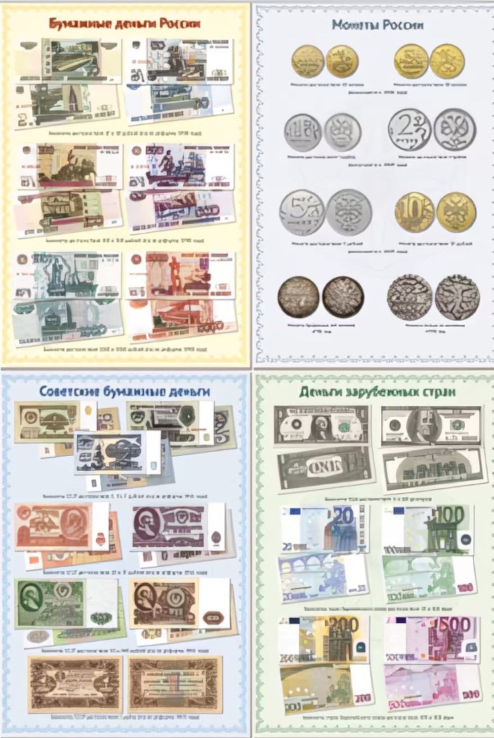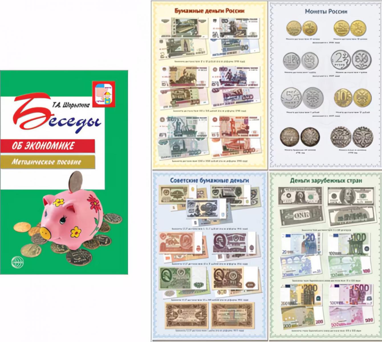 Комплект состоит: - Беседы об экономике: Методическое пособие. 3-е изд., испр. и доп. - Комплект познавательных мини-плакатов. Финансовая грамотность: Денежные знаки (4 листа А4+).
