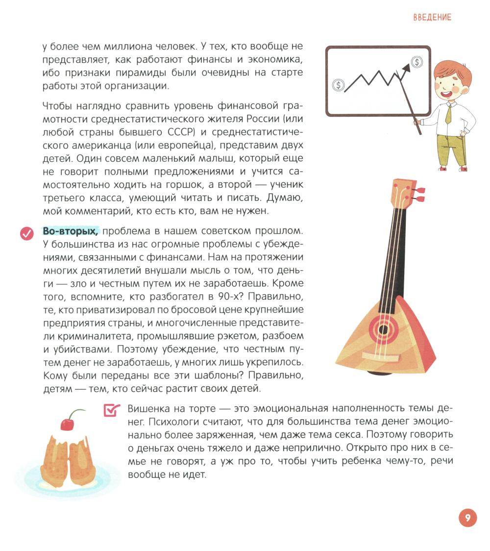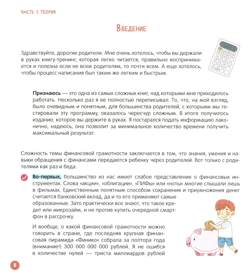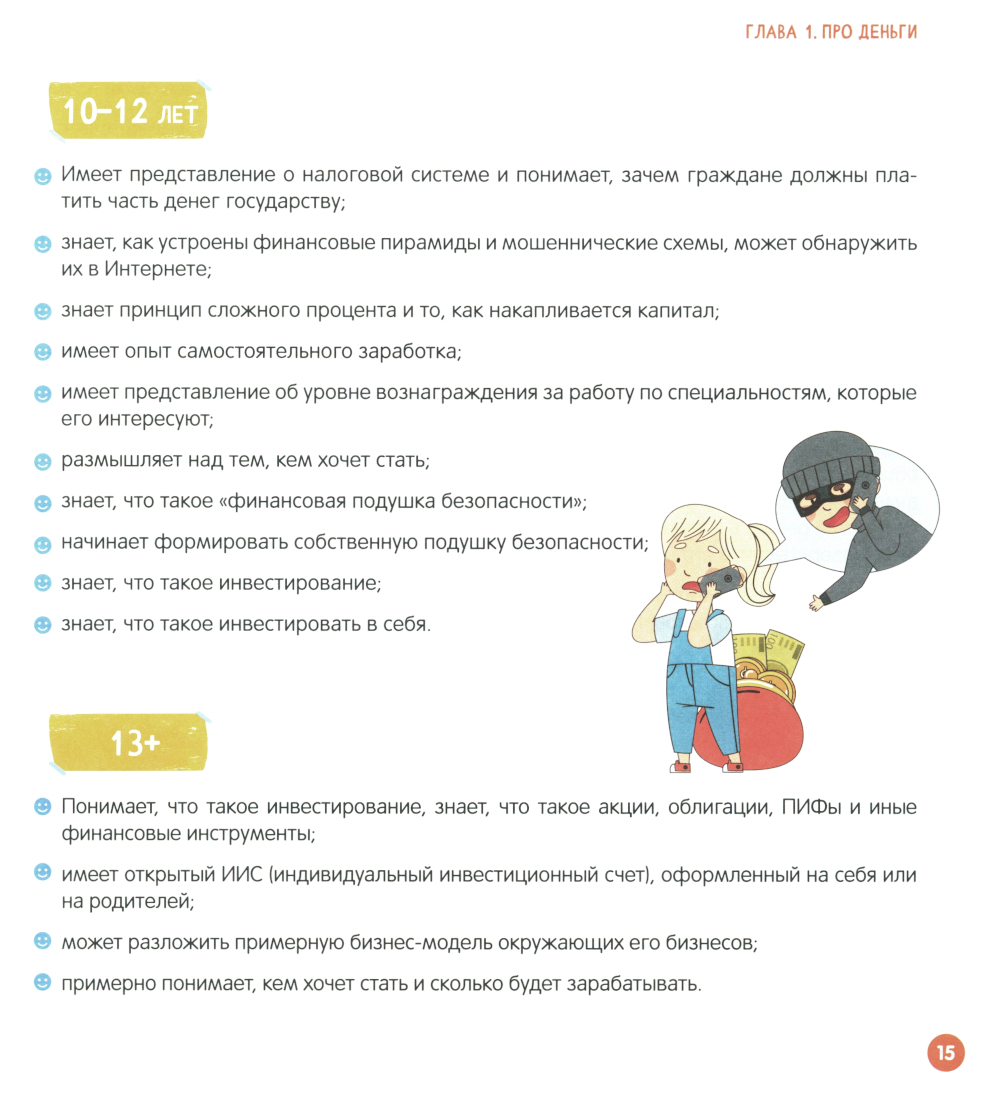 «Финансовый ликбез» будет полезен не только детям, но и родителям. Он поможет каждому сформировать правильное отношение к деньгам, разобраться в пассивах и активах, инвестициях и накоплениях. А главное, расскажет, с чего начать изучение мира финансов. С помощью данной книги в игровой форме вам удастся это сделать за 21 занятие. За это время ребенок научится копить, распределять бюджет, беречься от мошенников, распознавать фишинговые сайты и сможет выбрать свою будущую сферу деятельности. Пособие разработано Шамилем Ахмадуллиным, автором книг-бестселлеров «Скорочтение для детей. Как научить ребенка быстро читать и понимать прочитанное», «Развитие памяти у детей» и «Как научить ребенка таблице умножения за 3 дня».| Издательство | Капитал |