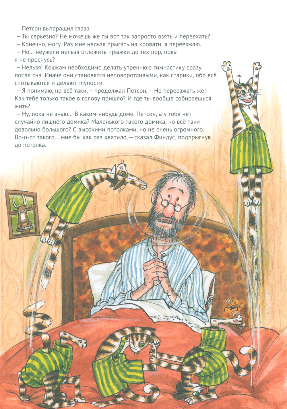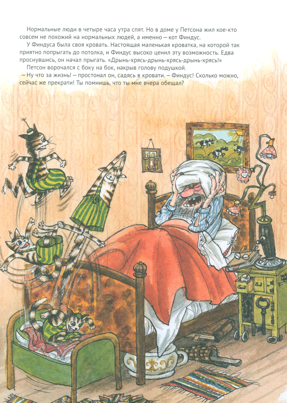 По утрам старик Петсон любит подольше поспать - хотя бы до семи часов. А кот Финдус не может прожить без утренней разминки, которая начинается в четыре утра. Всё бы ничего, но друзья живут в одной комнате.| Издательство | Белая ворона/ALBUS CORVUS |