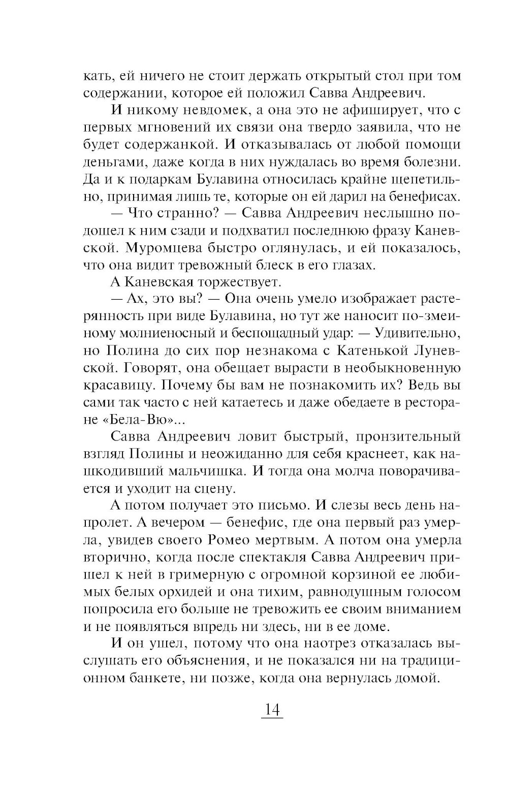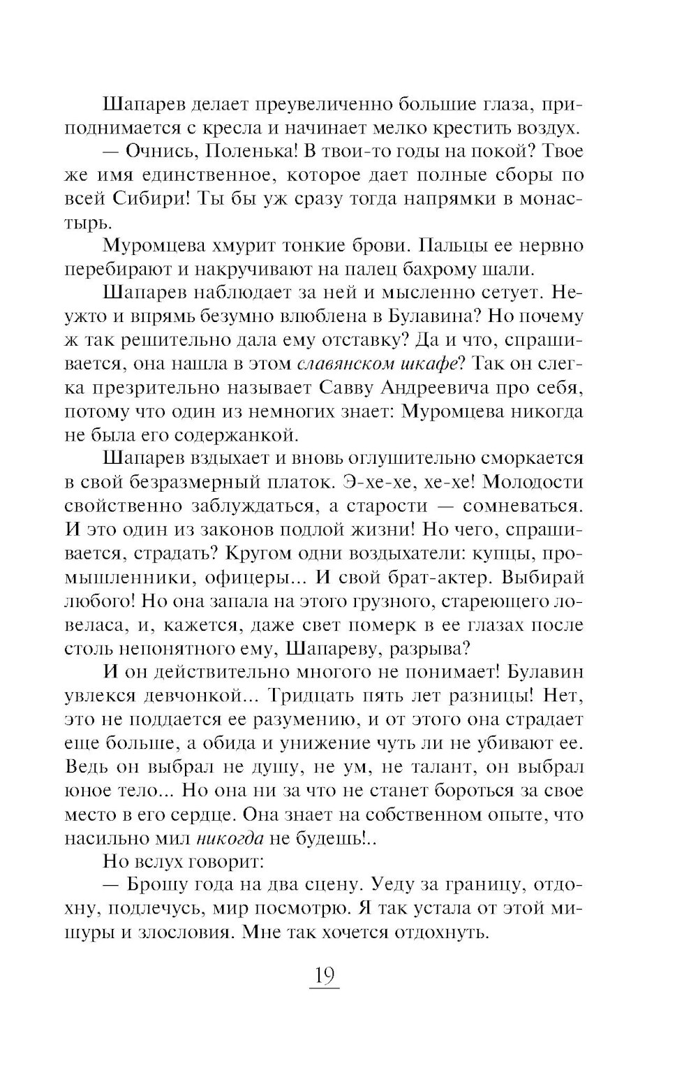 В Североеланске с некоторых пор орудует кровожадный убийца. Он перебил семью богача Ушакова: малолетних детей, мать, прислугу, жену. Ушаков в это время напрасно ждал супругу в театре, ведь она одна из ведущих актрис. Сыскные агенты быстро находят мнимого преступника, но происходит еще одно зверское убийство в гостинице - другой актрисы местного театра и ее любовника. Невольно глава сыскной полиции Тартищев вспомнил о самоубийстве примадонны театра Муромцевой, происшедшем несколько месяцев назад...| Издательство | Эксмо |