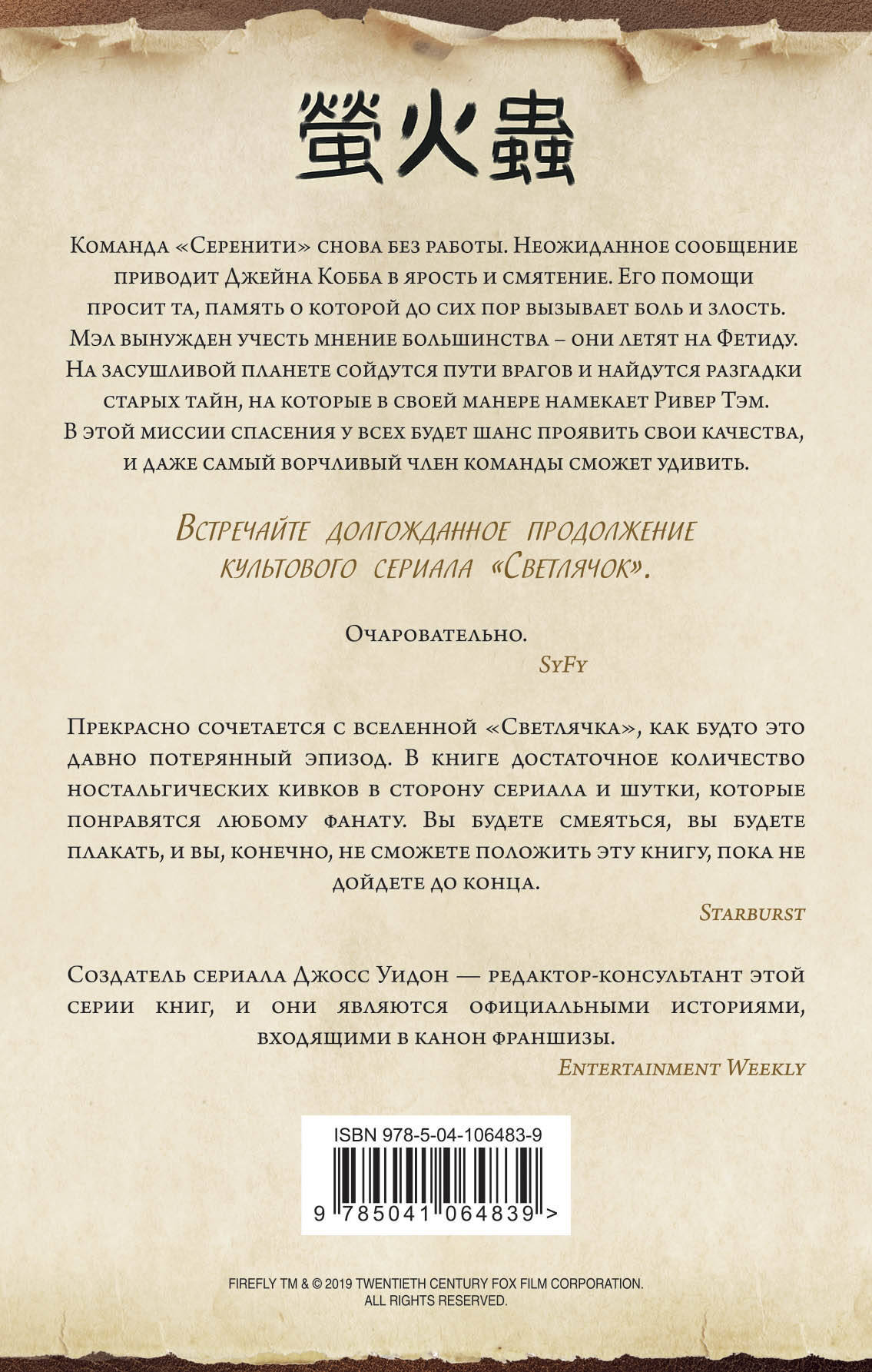 Второй роман трилогии, официально продолжающий культовый фантастический ТВ-сериал «Светлячок» - Firefly. Роман написан под контролем Джосса Уидона, создателя сериала. Джейн Кобб получает неожиданную просьбу о помощи от бывшей подруги, которую не видел много лет. Экипаж «Серенити», как всегда без работы и без гроша в кармане, отправляется на отдаленную пустынную планету Фетида. Здесь им предстоит встреча со старым врагом и его фанатично преданной бандой…| Издательство | ООО "Издательство "Эксмо" |