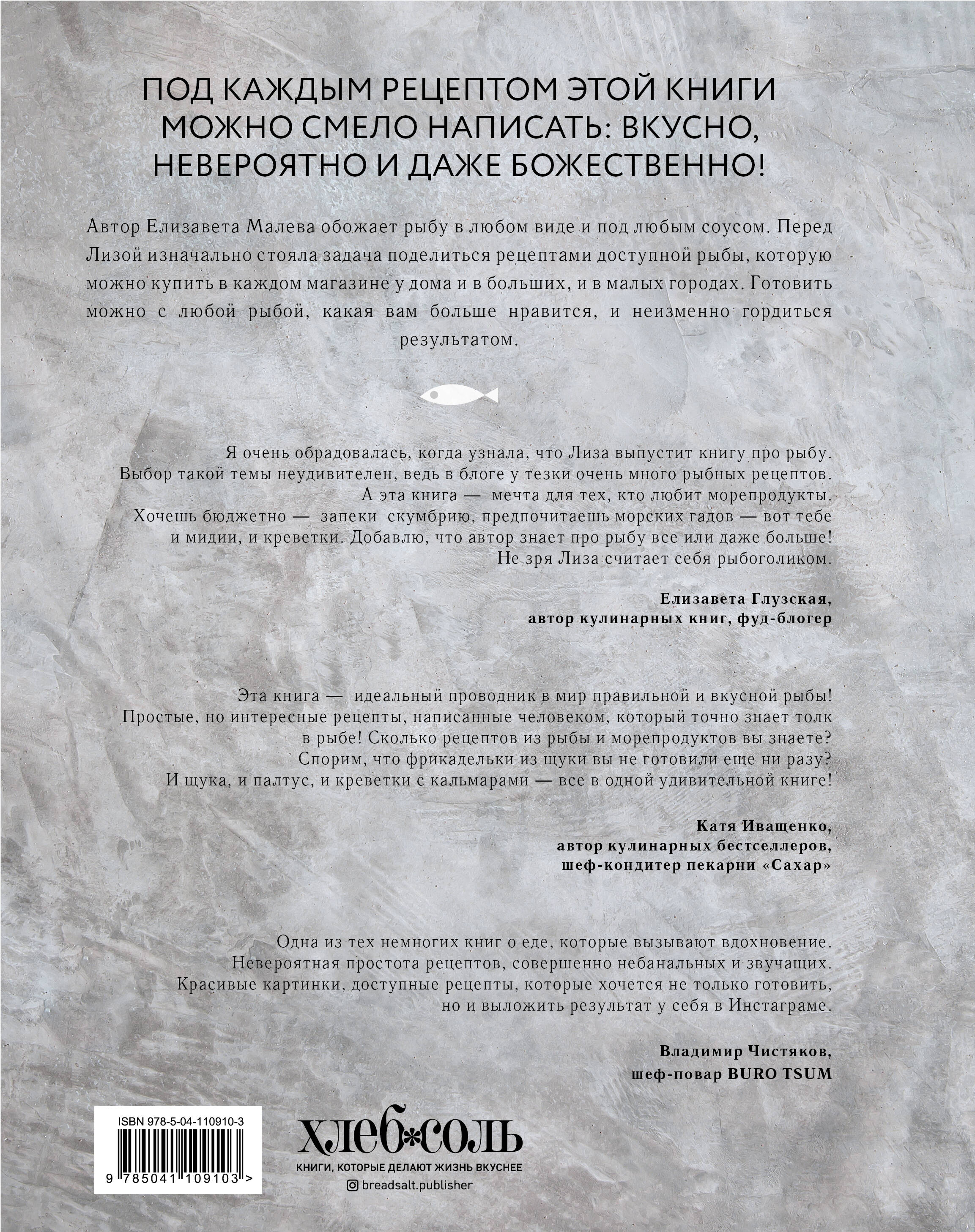 Под каждым рецептом этой книги можно смело написать: вкусно, невероятно и даже божественно! Автор Елизавета Малева обожает рыбу в любом виде и под любым соусом. Перед Лизой изначально стояла задача поделиться рецептами доступной рыбы, которую можно купить в каждом магазине у дома, и в больших, и в малых городах. В книге вы найдете: - более 60 оригинальных рыбных рецептов; - вдохновляющие фотографии и пошаговые инструкции; - полезные советы, лайфхаки и интересные факты о рыбе. Вы узнаете, как русские караси превратить в азиатские, какая рыба помогает вырабатывать гормон счастья - серотонин, а какая является натуральным афродизиаком. А также каким способом пожарить рыбу, чтобы не было неприятного запаха в квартире. Эта книга для тех, кто обожает рыбу, сходит с ума по запаху свежей корюшки и знает не понаслышке, что скумбрия, запеченная с луковым конфитюром - пища богов, ни больше ни меньше!| Издательство | ООО "Издательство "Эксмо" |