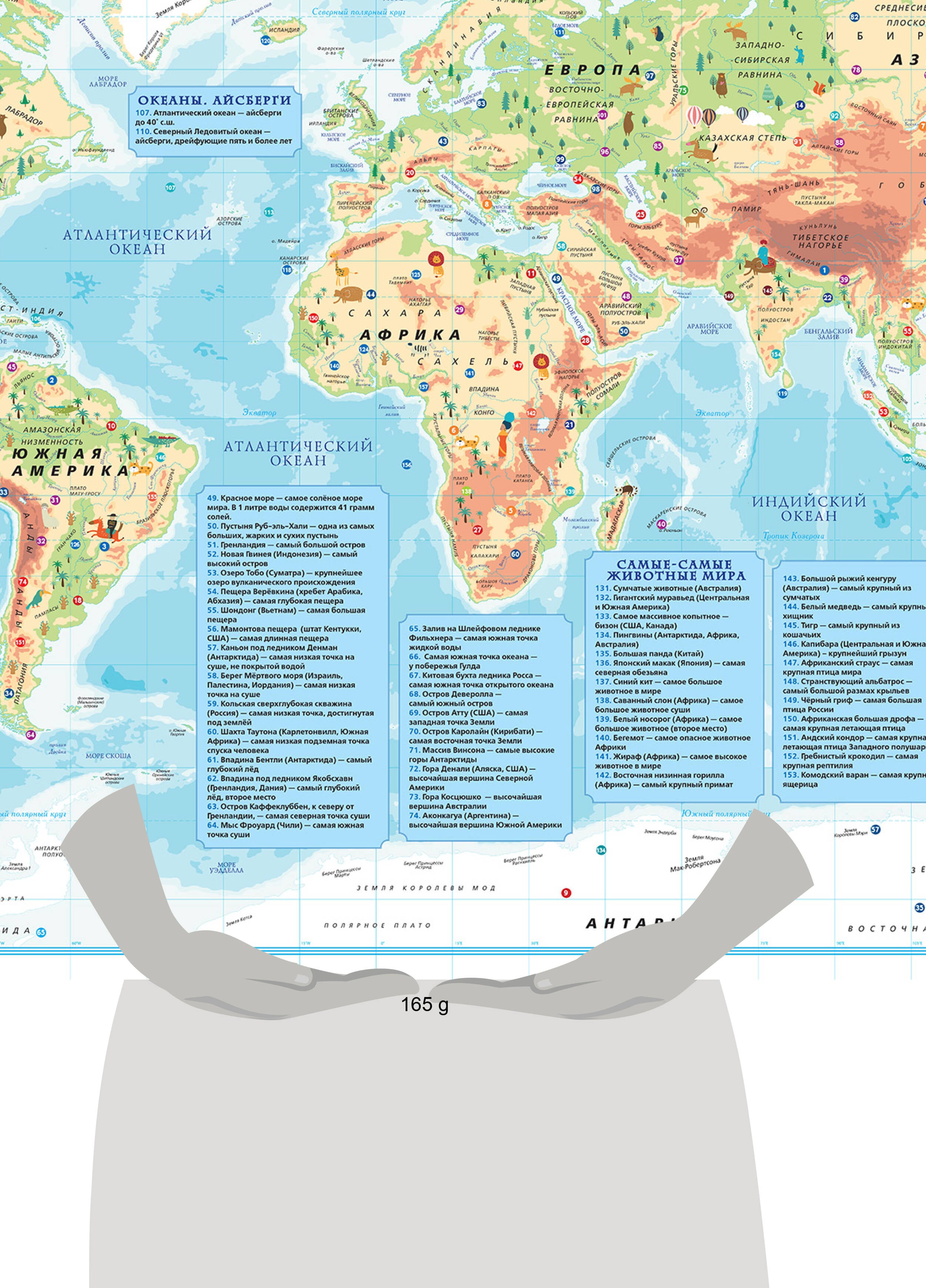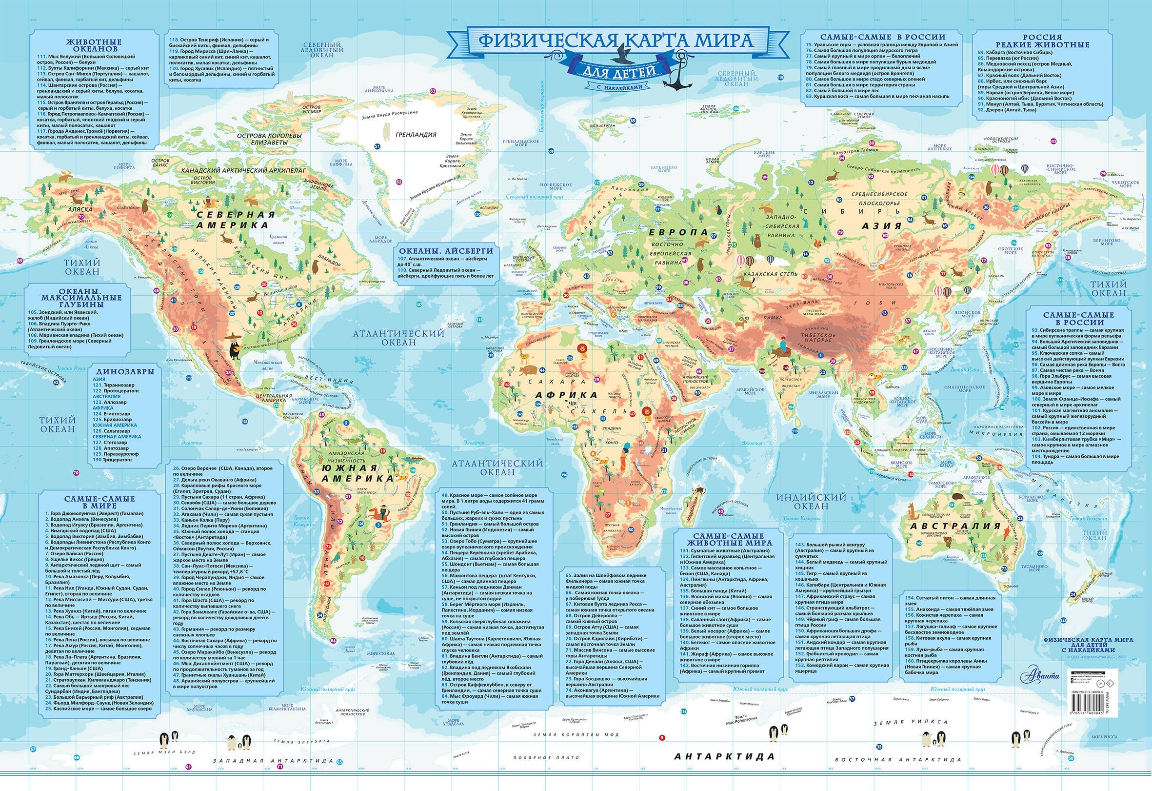 Физическая карта мира, дополненная полезной и интересной информацией о рельефе, климате и природных рекордах на нашей планете, будет полезна школьникам на уроках и при выполнении домашних заданий. Яркие наклейки помогут ребятам лучше усвоить новые знания. Для детей младшего и среднего школьного возраста| Издательство | Издательство "АСТ" |