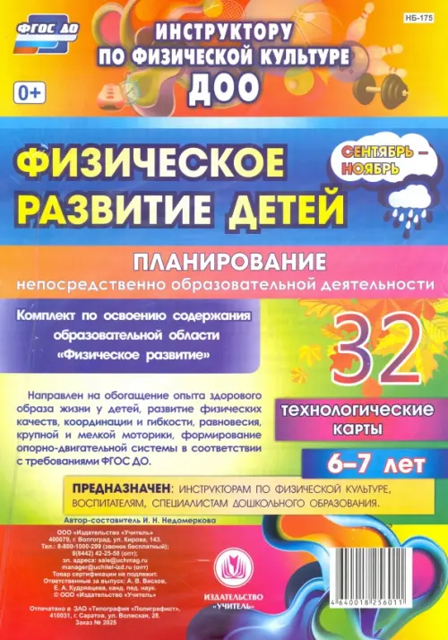 Комплект с описанием непосредственно образовательной деятельности, направленной на обогащение опыта здорового образа жизни у детей 6-7 лет, развитие физических качеств, координации и гибкости, равновесия, крупной и мелкой моторики, формирование опорно-двигательной системы, освоение содержания образовательной области "Физическое развитие" в соответствии с требованиями ФГОС ДО; разработан на основе ФГОС ДО и поможет воспитывающим взрослым (воспитателям и родителям) обогатить опыт осознанного отношения к своему здоровью у детей.