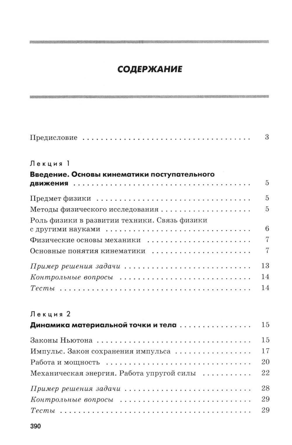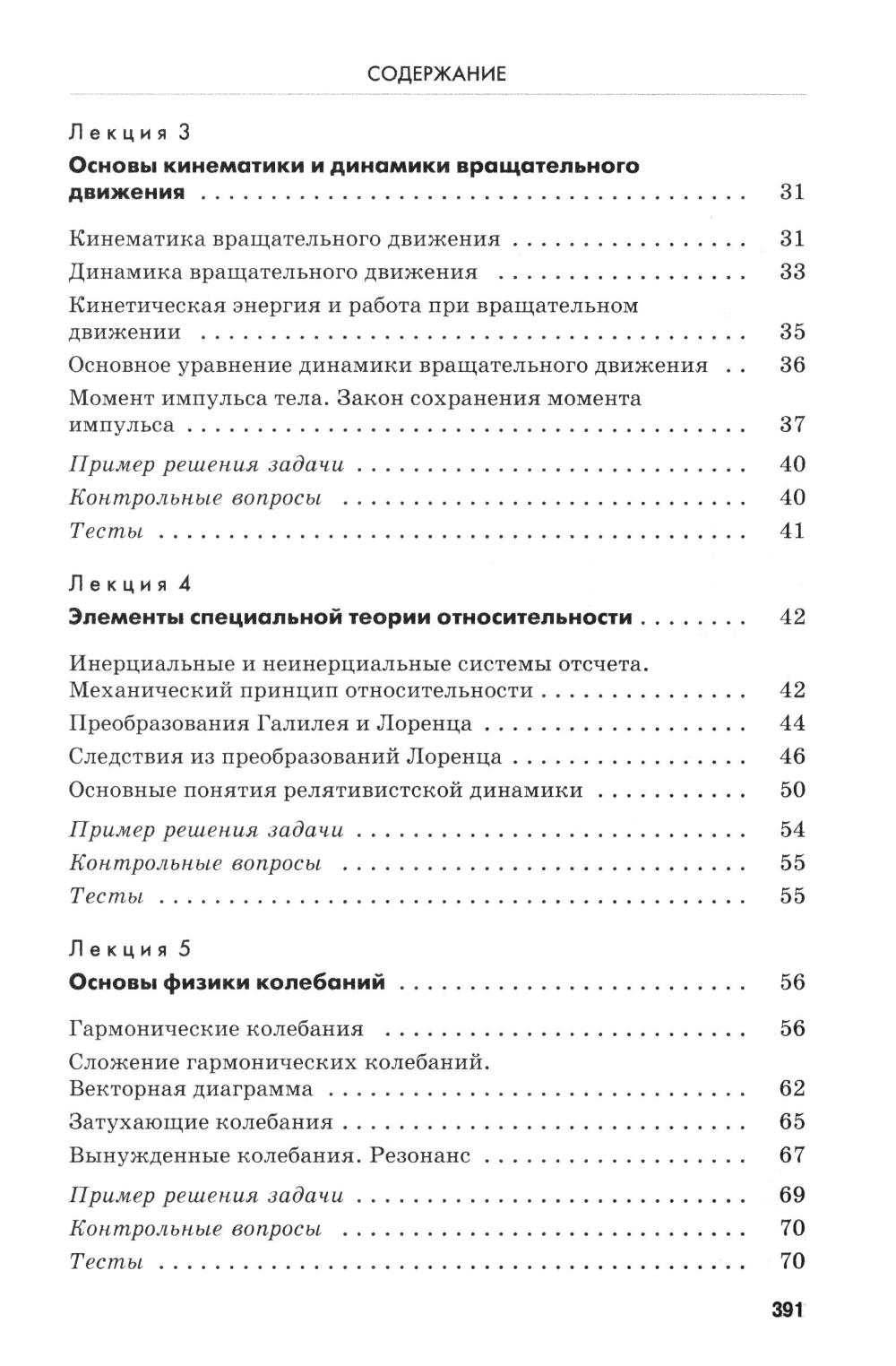 В пособии сделан акцент на изложении основных идей и методов физической науки, показана роль фундаментальных экспериментов в ее развитии. Даны разъяснения физических явлений, формулировки основополагающих законов и понятий, определения, необходимые для решения практических задач. Конспект лекций предназначен для повторения материала при подготовке к занятиям, зачетам и экзамену. В конце каждой лекции приводятся примеры решения задач, контрольные вопросы и тесты. Для студентов технических и естественно-научных специальностей вузов.