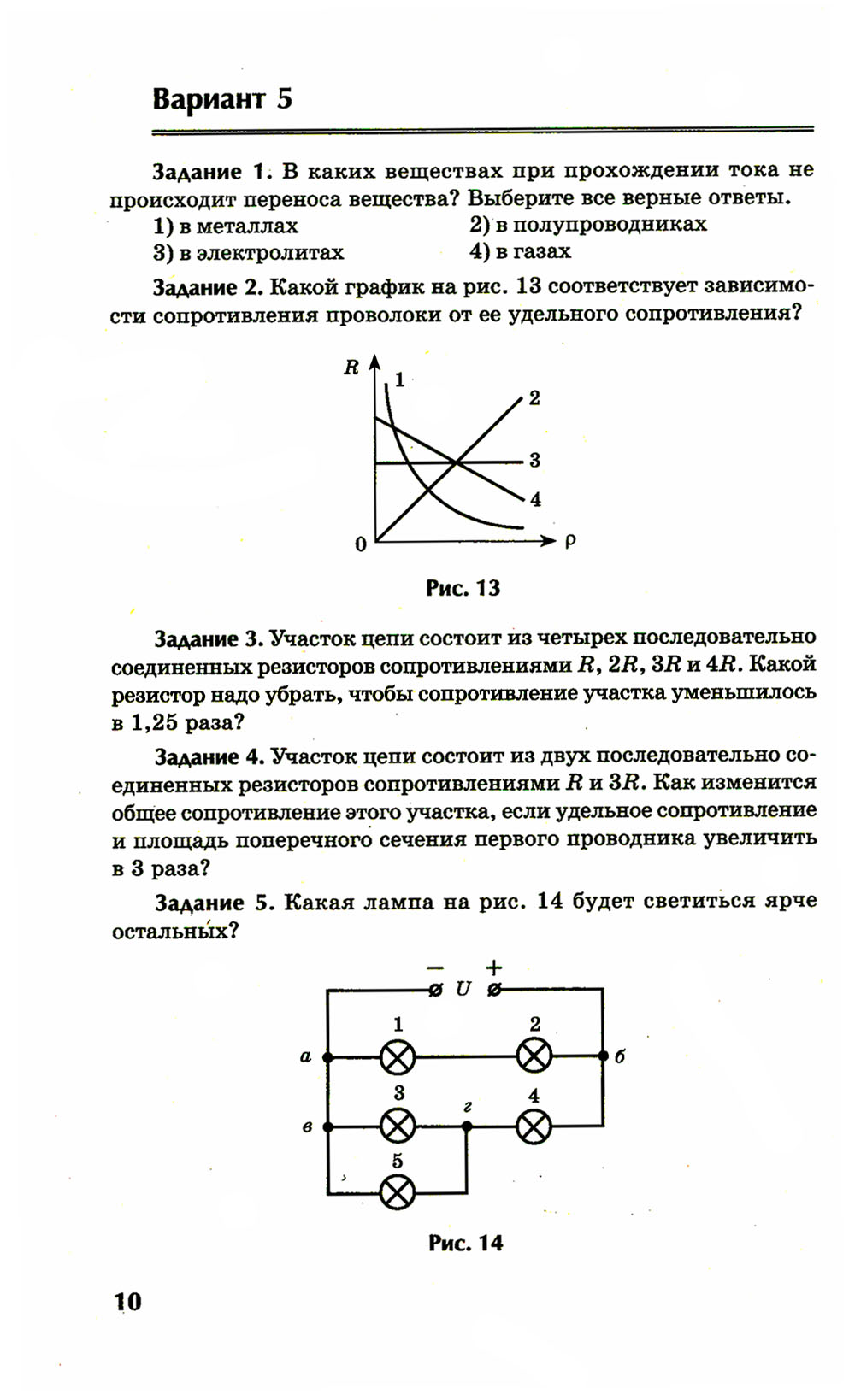 Каждая из тем этого раздела включает в себя 5 контрольных работ, состоящих из 10 заданий разного уровня трудности. Их содержание аналогично приведенным в Открытом банке заданий и используемым на ЕГЭ по физике. Если уроки по физике спаренные, как это имеет место в наукоемких лицеях и гимназиях естественно-научного профиля, то учитель может предлагать учащимся решить контрольную работу полностью, а на обычном 45-минутном уроке достаточно решения половины заданий по выбору учителя. Все задания соответствуют программе по физике для средней школы и способны надежно проверить уровень знаний старшеклассников.