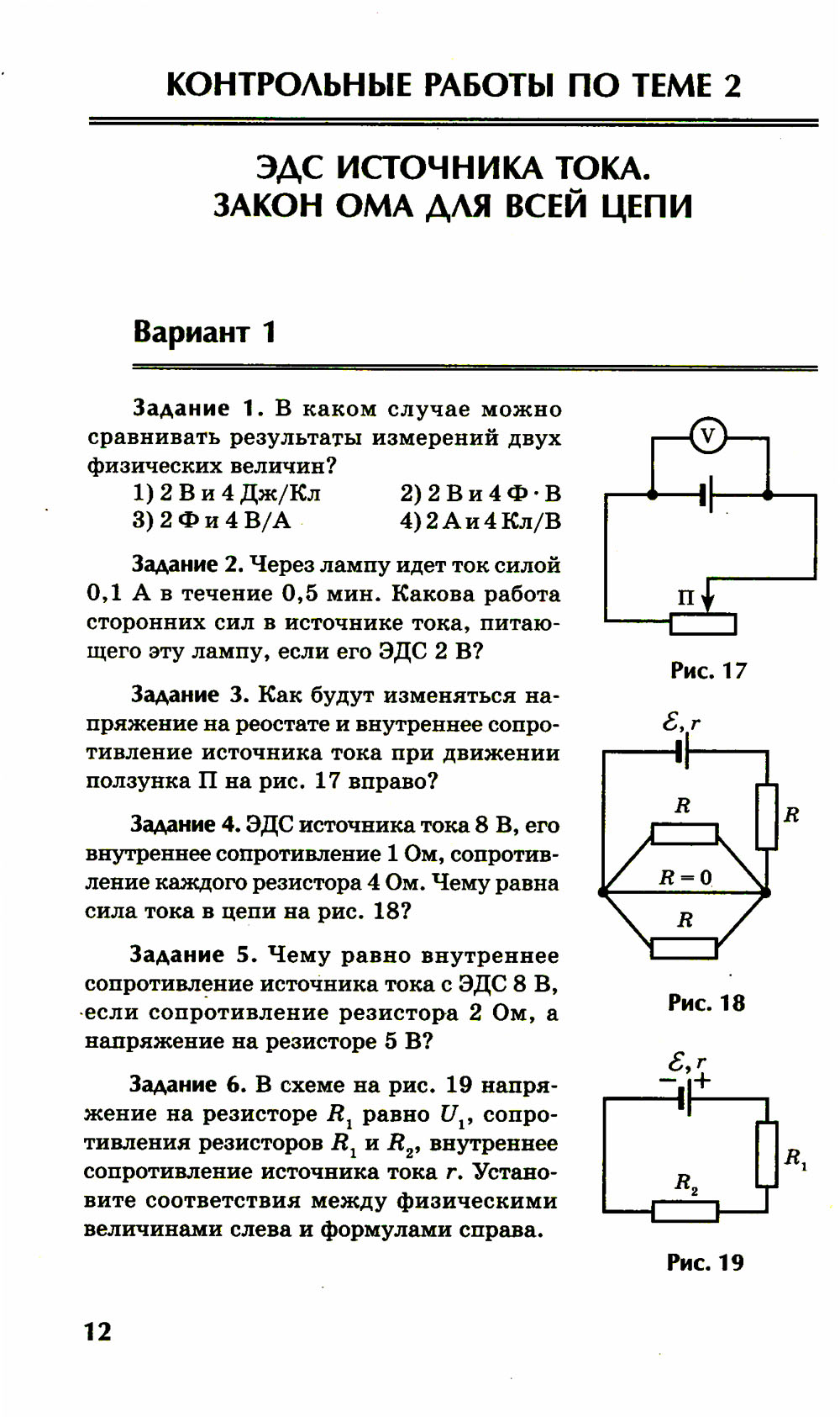 Аннотация: Физика. Контрольные работы. Постоянный ток. 10-11 классы