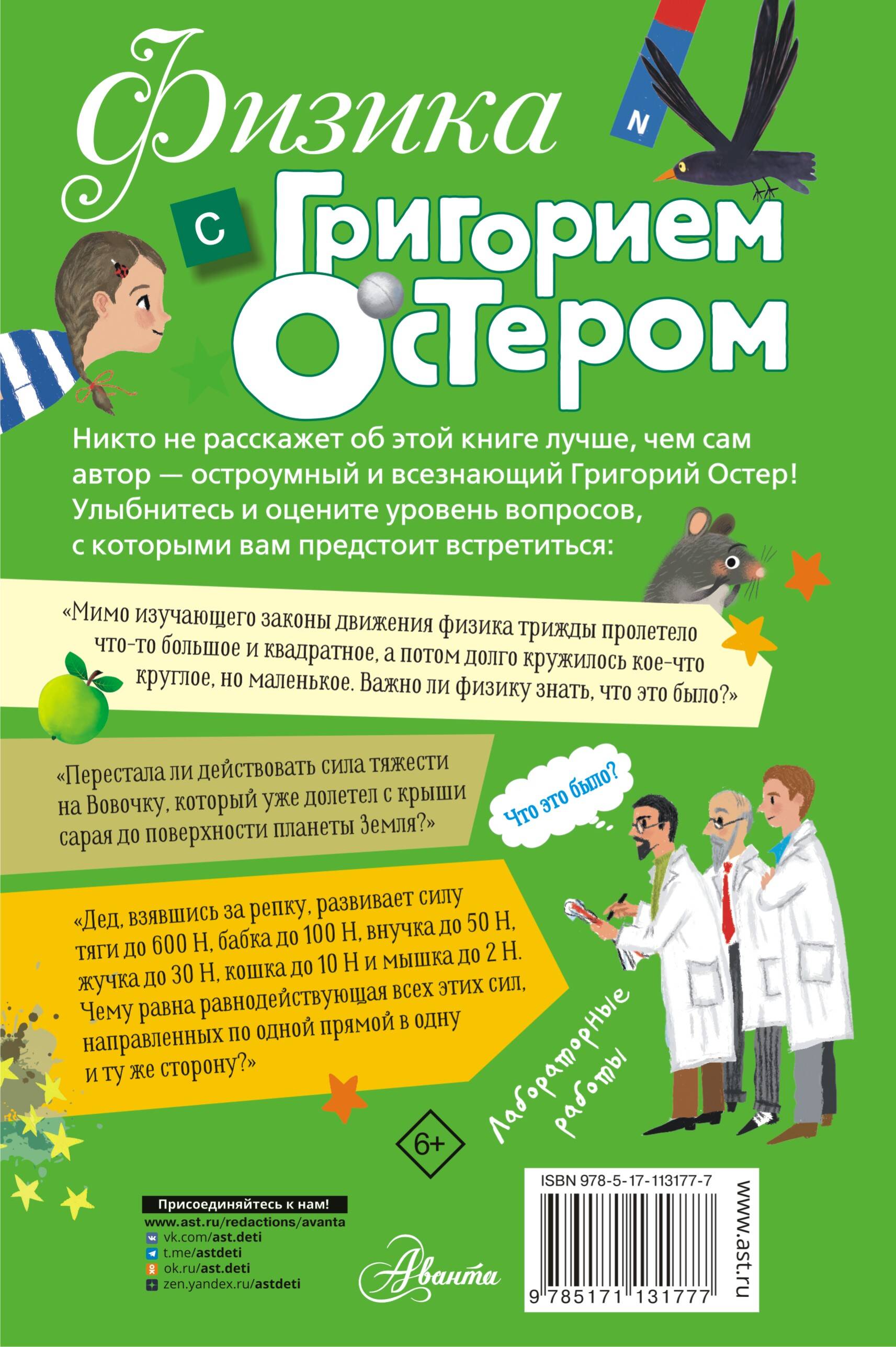 Популярная серия "Звездный научпоп" предлагает читателям "Физику с Григорием Остером". Что объединяет книги этой серии: юмор, желание авторов помочь школьникам легко, с улыбкой освоить трудный предмет (ведь для кого-то это физика, а для кого-то русский язык), снять с детей напряжение и, в тоже время, заставить их мозги работать! Авторам серии (Маше Трауб, Григорию Остеру, Владимиру Сурдину) это удалось, теперь дело за взрослыми, которые могут приобрести эти книги для своиих детей, а уже ученики ответят на это хорошими отметками в дневниках!| Издательство | Издательство "АСТ" |