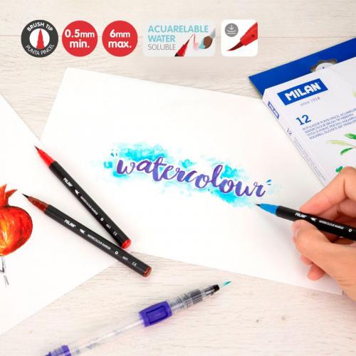 Otas tipa flomāsteri, kuru sastāvā akvareļu krāsa. Krāsojums no 0,5 mm līdz 6 mm. Ideāli piemērots burtu rakstīšanai, kaligrāfijai vai gleznošanai dažādos triepienos. Pēc lietošanas tinti var atšķaidīt ar ūdeni, lai iegūtu akvareļkrāsu. 12 krāsas. Ūdens bāzes tinte ar spilgtām, sajaucamām un viegli uzklājamām krāsām. Tinti var viegli noņemt no vairuma audumu (stundu mērcēt aukstā ūdenī un pēc tam mazgāt veļas mašīnā aukstā ūdenī). Ar perforētu drošības vāciņu