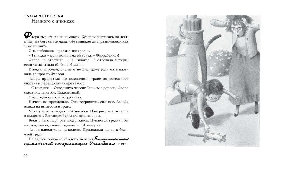 Новая история от Кейт ДиКамилло. В ней рассказывается о бельчонке Одиссее, которого девочка Флора спасла из засосавшего его пылесоса. После такого стресса у Одиссея открылись необыкновенные способности, словно он стал супергероем. За эту книгу ДиКамилло получила почётную награду - медаль «Национальный посол детской литературы».| Издательство | Махаон |
