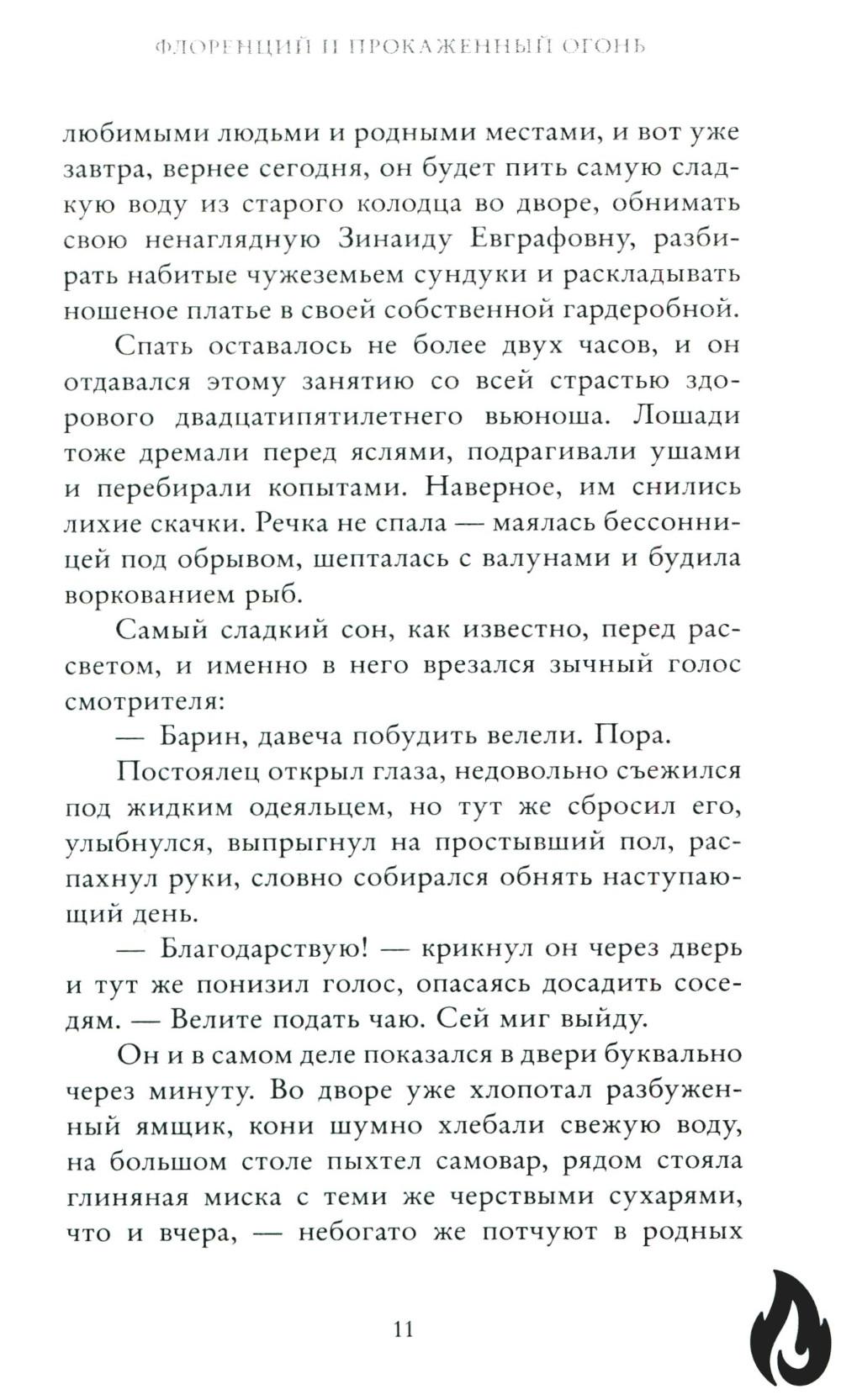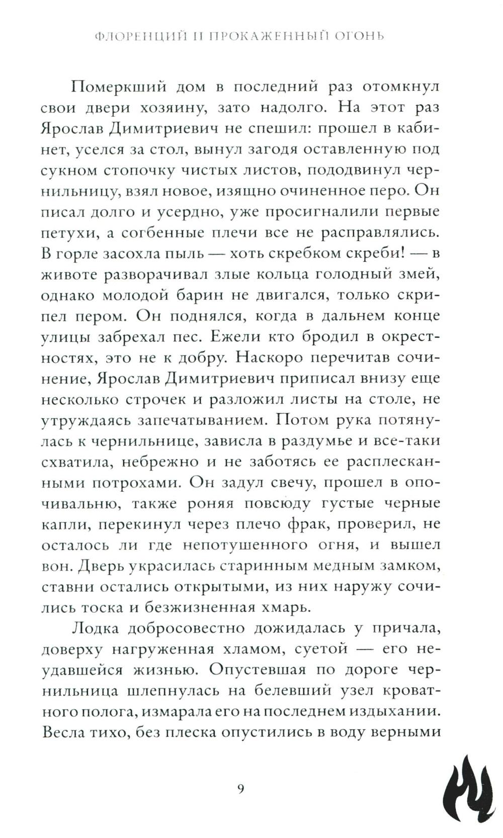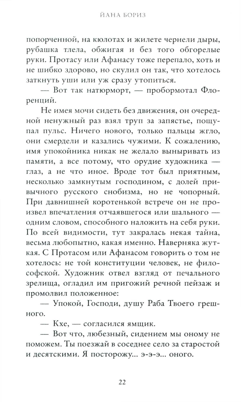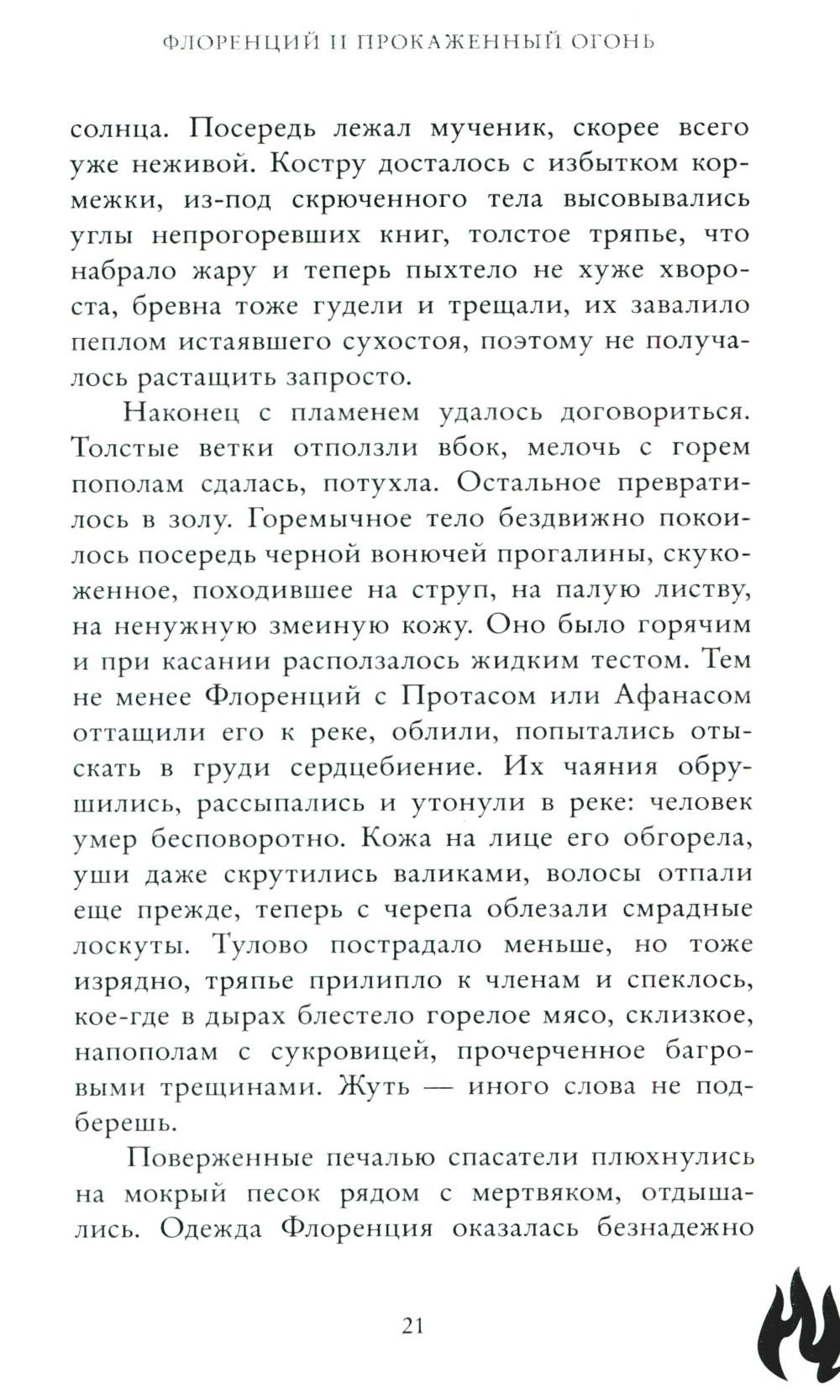 «Флоренций и прокаженный огонь» - захватывающий и атмосферный детектив, который приглашает погрузиться в далекий и полный тайн XIX век. Русская деревня в 1810 году сродни стоячей воде... Возвращаясь из Италии после долгих лет учебы, скульптор Флоренций Листратов не знал, что застрянет в родном селе, к тому же обвиненный в убийстве. Жителям деревни неведомо, почему почтенный господин Обуховский шагнул в пылающий костер и погиб в нем. Флоренция, единственное оружие которого - зоркий глаз художника, записывают в подозреваемые. Он-то и подмечает, что местный романтический злодей держит в захламленной комнате тайник, а в фамильных летописях имеет родство с весьма популярной особой. Быть может, эти обстоятельства как-то связаны с огненной казнью? Флоренцию предстоит узнать, кто мутит стоячую воду родной монастырки, а главное - за какой корыстью.| Издательство | Клевер-Медиа-Групп |