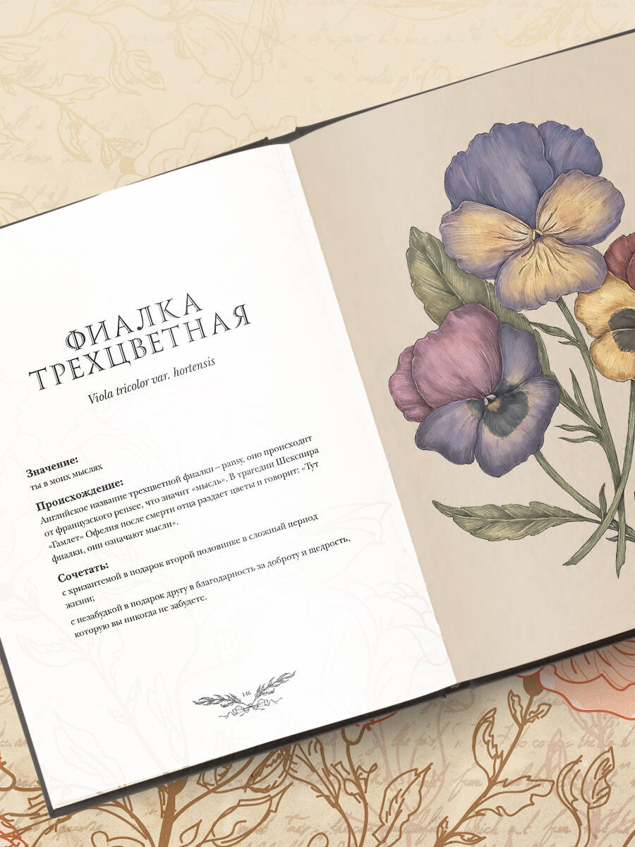 В Викторианскую эпоху цинния означала вечную дружбу, розмарин символизировал память, а радушным хозяевам дома в знак благодарности было принято дарить душистый горошек. Язык цветов с древних времен использовался как тайное средство общения. Флориография - это полноцветный путеводитель по историческому использованию и секретному значению популярных и редких цветов и трав. Ее популярность резко возросла в XIX веке, особенно в викторианской Англии и США, когда надлежащий этикет препятствовал открытому проявлению эмоций. Эта великолепно иллюстрированная ботаническая энциклопедия таит в себе закодированные смыслы, спрятанные в различных цветах, которые могут говорить о любви и нежности, печали и сожалении, неприязни и ненависти. Вы найдете примеры букетов, соответствующую мифологию или историю, а также варианты по сочетанию растений. Для тех, кто любит цветы и ищет более глубокое понимание смысла, стоящего за ними, это издание станет бесценным подарком.