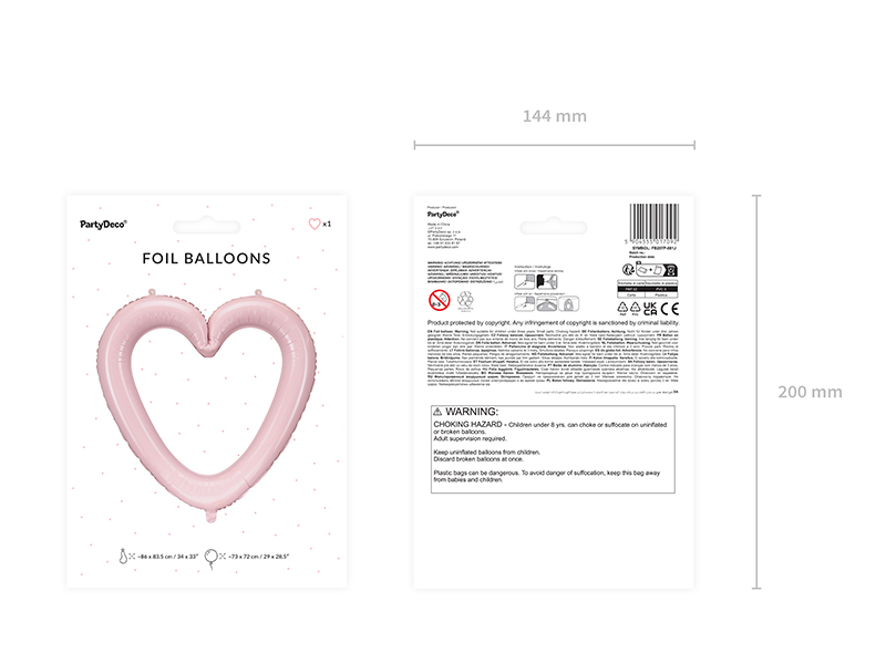Foil balloon Heart frame in light pink colour, size before inflation approx. 86 x 83.5 cm (34 x 33''), size after inflation approx. 73 x 72 cm (29 x 28.5''). Inflate with air and helium. Set contains a straw.