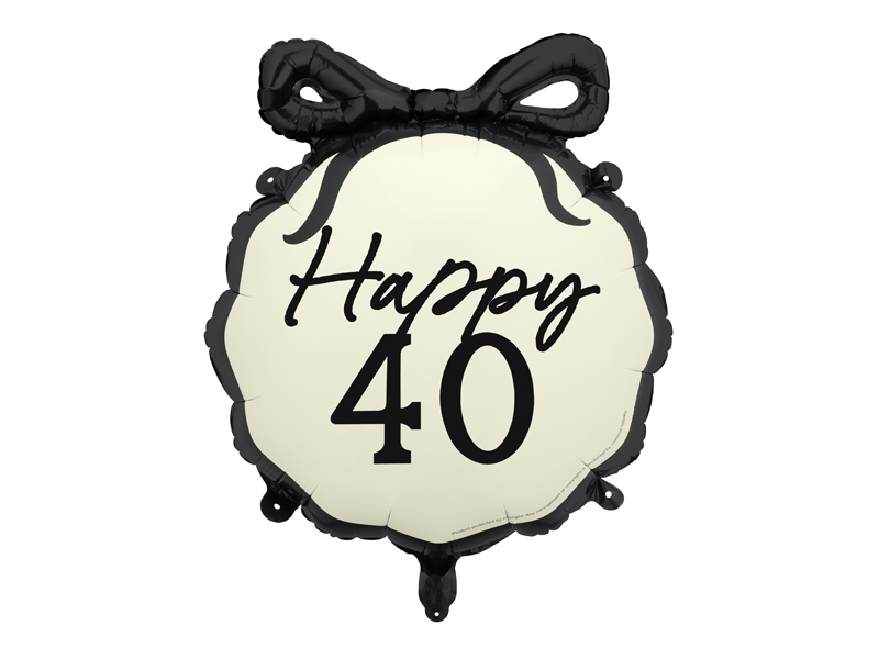 Foil Balloon Pill Happy ''40'', mix of colors. Dimensions before inflation approx. 57.5 x 56 cm (22.5 x 22''), dimensions after inflation approx. 47.5 x 45 cm (18.5 x 17.5''). For inflation with air and helium. Set includes a straw.