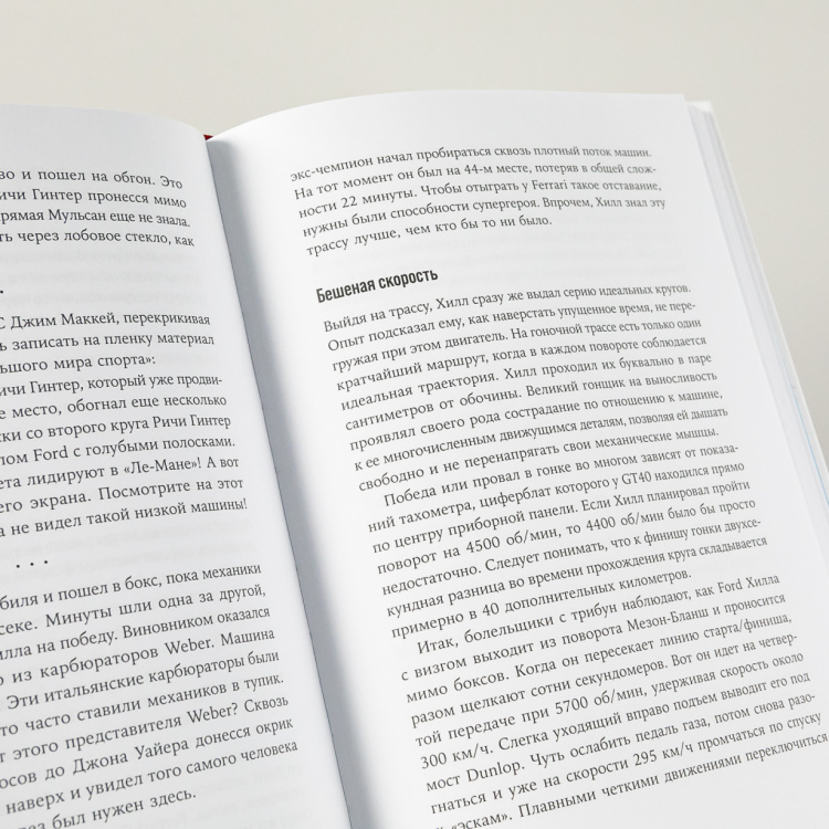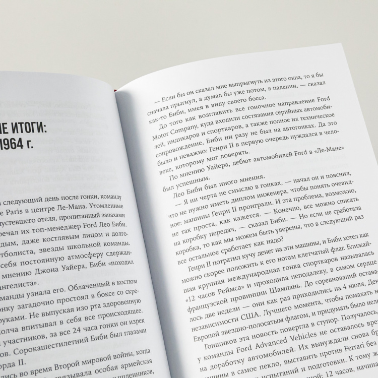 «Генри II вознамерился сделать то, что не удавалось никому прежде. На кону стояла репутация его семьи, неразрывно связанная с автомобилями Ford. С момента, когда в 1932 г. его дед выпустил двигатель V8 с плоскими головками - последнее великое изобретение старшего Генри, - империя Фордов не поражала мир инженерными новинками. Теперь внук хотел кардинально изменить эту ситуацию. При условии, конечно, что он сможет выиграть».