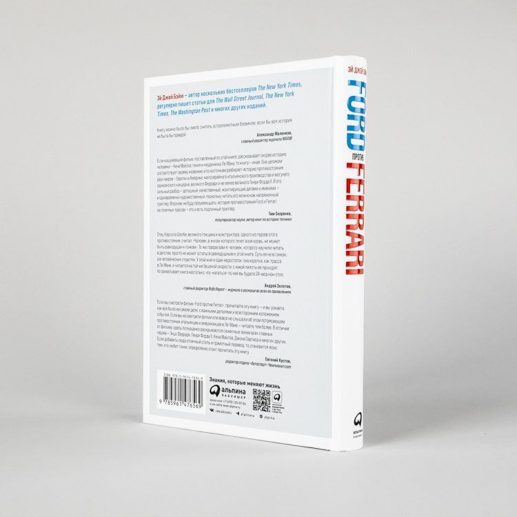 Книга американского журналиста Эй Джей Бэйма «Ford против Ferrari», посвященная борьбе двух титанов, легла в основу одноименного голливудского блокбастера. В ней подробно описывается жесткое противостояние автопромышленности Америки и Европы: штучные шедевры против конвейера, изящество против мощи, блестящие инженеры итальянского концерна против гениальной пары - инженера Ford Шелби и пилота Кена Майлза.