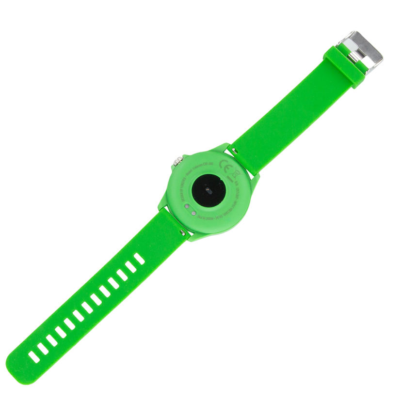 Циферблат, безель и матовый силиконовый ремешок выдержаны в яркой цветовой гамме.