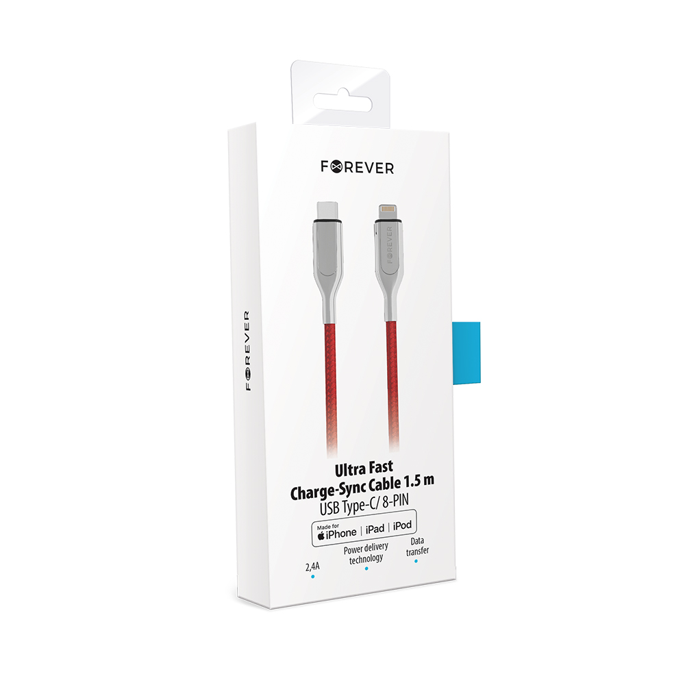 Charge your batteries at breakneck speed and keep going! When you're on the run and need power non-stop, reach for the latest in high-speed mobile charging cable technology. Charge your batteries and get to work. The cable with the popular type-c connector ensures you always have plenty of power. Stay connected and up to date. Don't let the important stuff pass you by. The cable supports 5A fast charging. Your smartphone has slower technology? Don't worry, the Forever Core cable will adapt to your device and charge it at the maximum possible speed.
