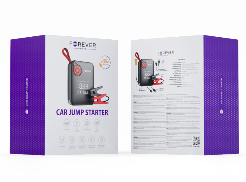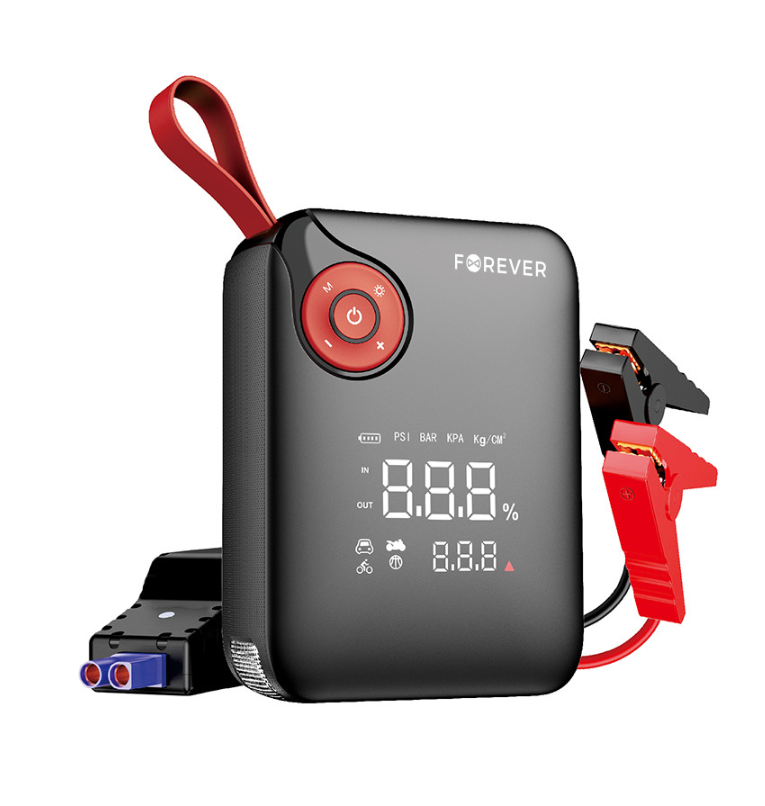 Стартер Forever jump starter JS-400 - это компактный автомобильный стартер емкостью 7200 мАч, который обеспечивает надежную поддержку в экстренных ситуациях на дороге. Благодаря способности выдавать пусковой ток до 600 А, он эффективно запускает автомобили и дополнительно оснащен компрессором с максимальным давлением 150 фунтов на квадратный дюйм и светодиодным фонарем.