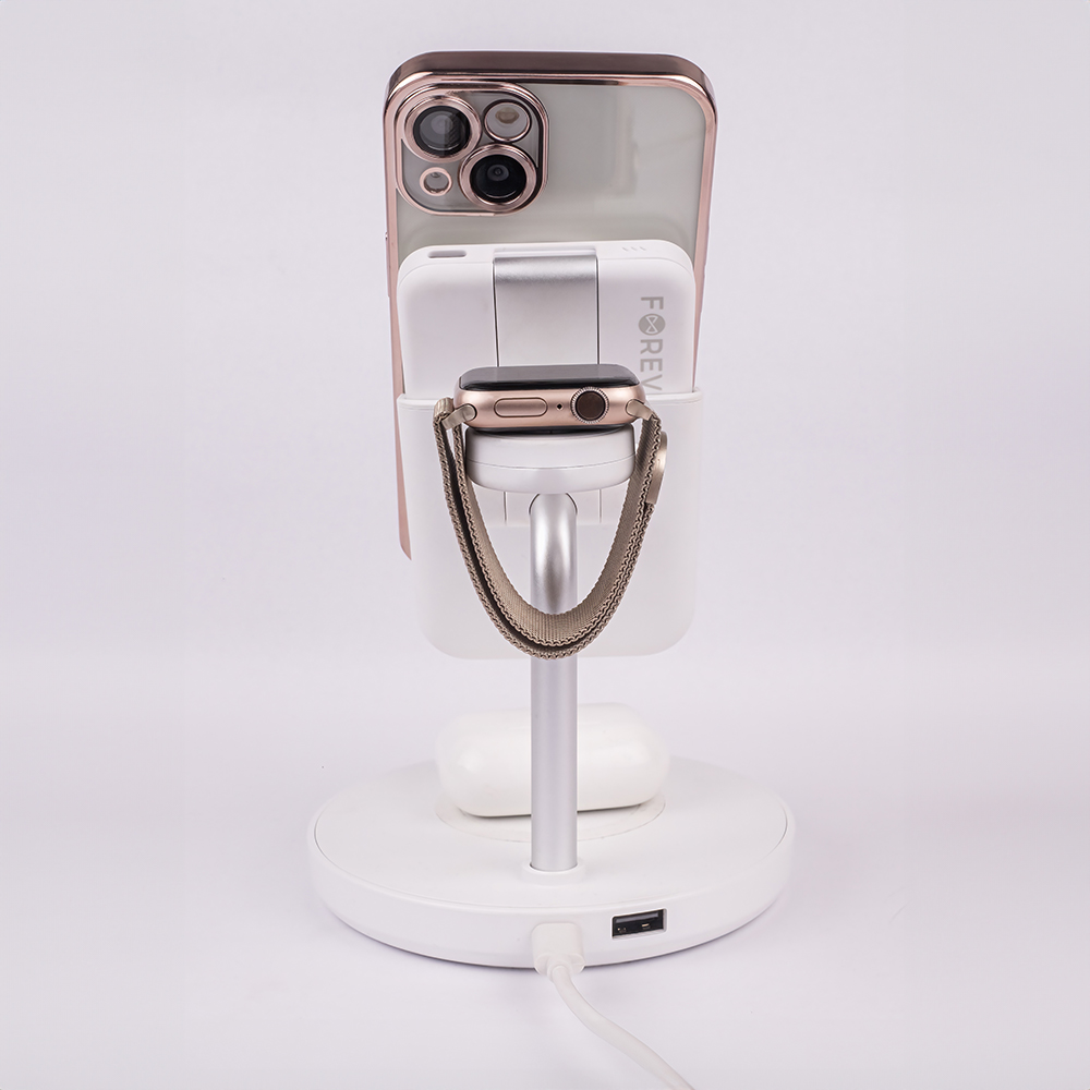Forever MACS-100 magnetic wireless charging station with power bank white 5in1