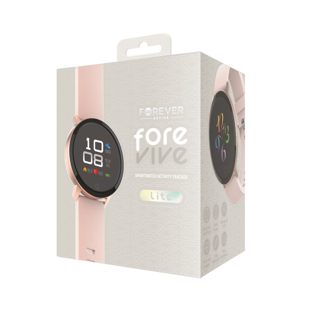 Forever Lite - это идеальные умные часы для людей, которые ожидают, что их часы всегда будут идти в ногу с ними. Благодаря долговечному аккумулятору, расширенным спортивным функциям, монитору сердечного ритма и современному подключению Bluetooth 5.0 у вас будет множество возможностей облегчить себе жизнь. Внешний вид часов можно настроить всего за несколько секунд. Умные часы предоставляют вам возможность выбора циферблатов, а удобный силиконовый ремешок доступен в двух цветах - черном или розовом. Корпус часов изготовлен из высококачественных материалов, что в сочетании с соответствием требованиям международного стандарта водонепроницаемости IP67 обеспечивает их долговечность и надежность. Forevive Lite не боится дождя или брызг.