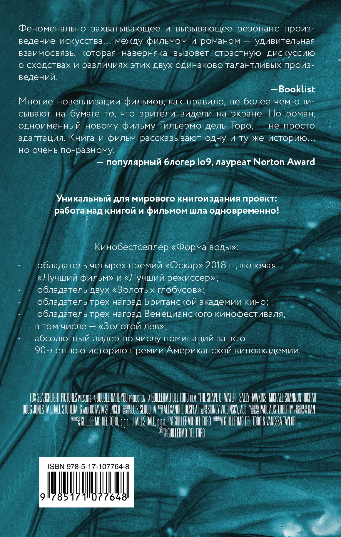 1962 год. Элиза Эспозито работает уборщицей в исследовательском аэрокосмическом центре "Оккам" в Балтиморе. Эта работа - лучшее, что смогла получить немая сирота из приюта. И если бы не подруга Зельда, да сосед Джайлз, жизнь Элизы была бы совсем невыносимой. Но однажды ночью в "Оккаме" появляется военнослужащий Ричард Стрикланд, доставивший в центр сверхсекретный объект - пойманного в джунглях Амазонки человека-амфибию. Это создание одновременно пугает Элизу и завораживает, и она учит его языку жестов. Постепенно взаимный интерес перерастает в чувства, и Элиза решается на совместный побег с возлюбленным. Она полна решимости, но Стрикланд не собирается так легко расстаться с подопытным, ведь об амфибии узнали русские и намереваются его выкрасть. Сможет ли Элиза, даже с поддержкой Зельды и Джайлза, осуществить свой безумный план?| Издательство | ИЗДАТЕЛЬСТВО "АСТ" |