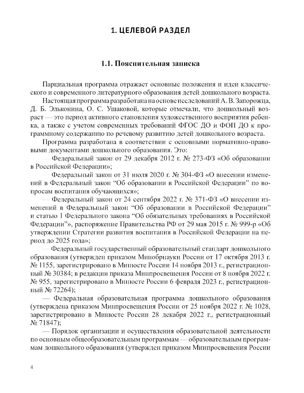 Программа разработана на основе методического комплекта «Занятия по формированию интереса дошкольников к детской художественной литературе в соответствии ФОП ДО», состоящего из четырех книг. Она направлена на формирование у детей раннего и дошкольного возраста умения воспринимать и понимать произведение литературы, воспитание интереса и способностей к чтению, развитие предпосылок читательской грамотности. Согласно ФГОС ДО, важным направлением образовательной области «Речевое развитие» являются ознакомление с литературными произведениями различных жанров и формирование их осмысленного восприятия. В ФОП ДО (ОО «Речевое развитие») на каждом возрастном этапе (начиная с двух лет) выделен раздел «Интерес к художественной литературе», в котором конкретизированы образовательные задачи по ознакомлению детей раннего и дошкольного возраста с художественной литературой. Парциальная программа раскрывает методы, приемы, средства и формы работы с детьми на каждом возрастном этапе с учетом особенностей их речевого развития. Конкретные рекомендации по организации художественно-речевой деятельности в каждой возрастной группе позволят оптимизировать работу педагогического коллектива ДОО по приобщению к книге детей от 2 до 7 лет. Книга адресована воспитателям, руководителям, педагогическим коллективам ДОО как практическое руководство, направленное на развитие детского интереса к книге, формирование фундамента будущего талантливого читателя, который обязательно при умелом руководстве взрослого вырастет из маленького слушателя.| Издательство | Детство-Пресс |