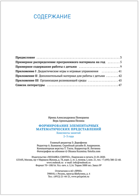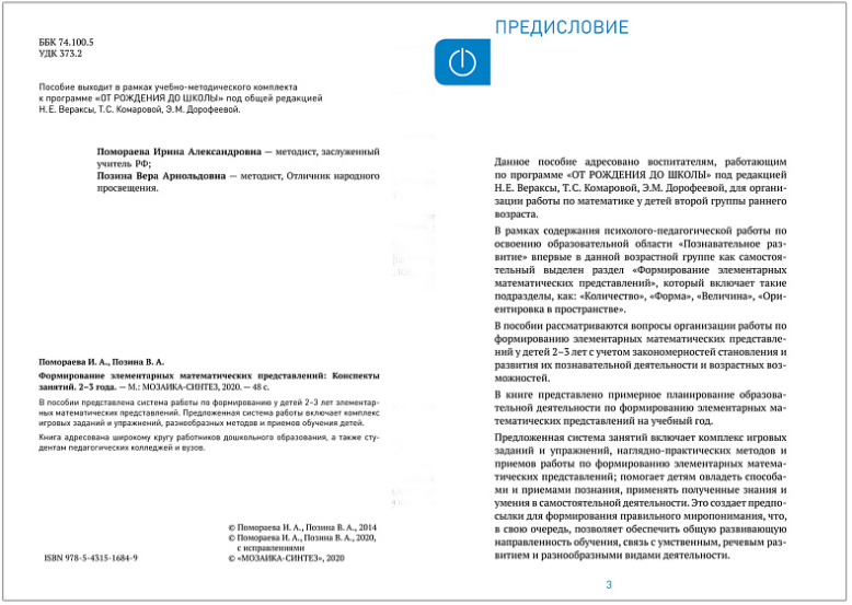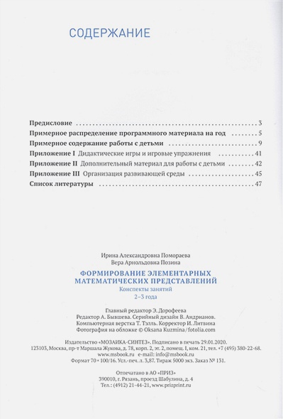Формирование элементарных математических представлений.Конспекты занятий| Автор/составитель | Помораева И.А., Позина В.А. |