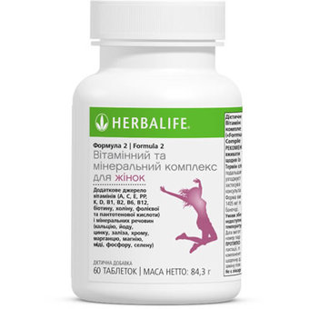 В состав комплекса мультивитаминов Формула 2 для Женщин от Гербалайф входят витамины: А, С, Е, РР, D3, К, B1, B2, B6, B12, холин, биотин, пантотеновая и фолиевая кислоты, а также минералы: цинк, кальций, железо, йод, марганец, хром, медь, магний, селен, фосфор, бета-каротин. Комплекс мультивитаминов обеспечивает женский организм нужным количеством минералов и витаминов.