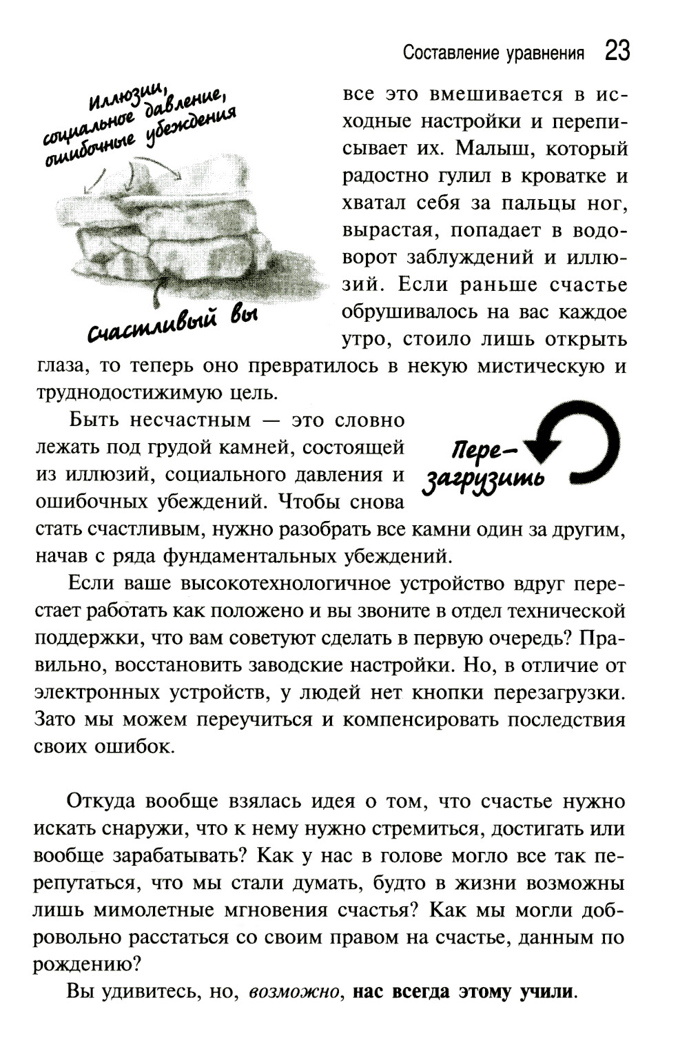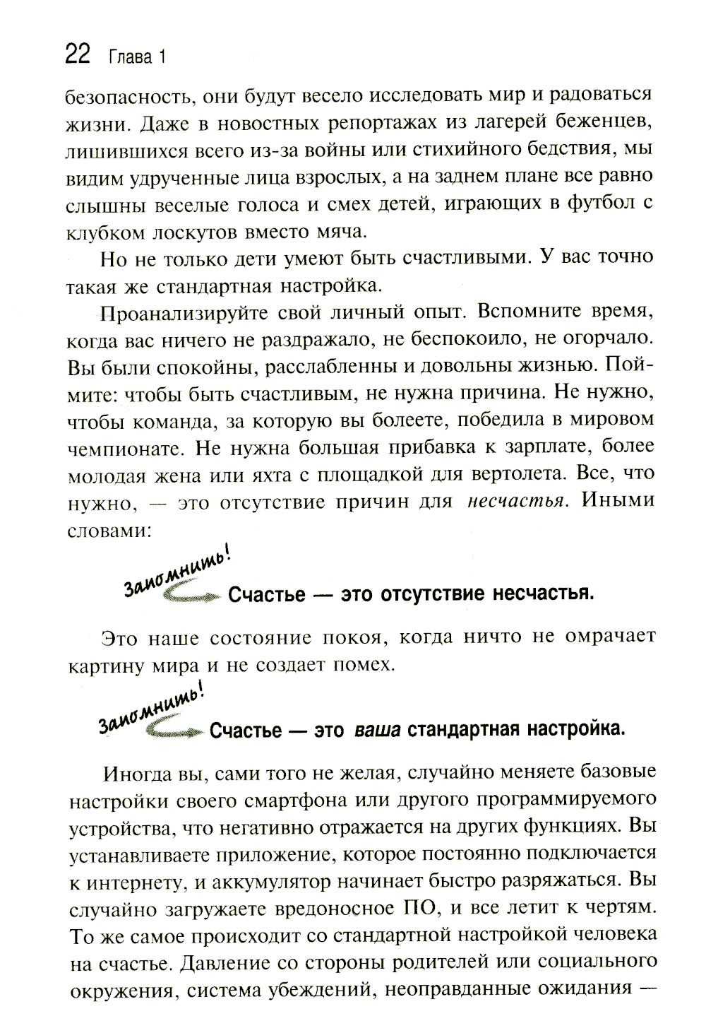 Идея книги предельно проста: люди устроены так, чтобы быть счастливыми. Но иногда у каждого из нас наступает черная полоса, мы опускаем руки и жизнь перестает приносить нам радость. Можно ли научиться перезапускать свою систему и восстанавливать исходные настройки: режим счастья? Сотрудник секретного подразделения Google и разработчик программного обеспечения Мо Гавдат сумел вывести неизменный алгоритм, который любой из нас может запускать снова и снова и каждый раз гарантированно получать предсказуемый исход - счастье. С помощью этой формулы вы тоже сможете перепрограммировать свою систему - и наслаждаться жизнью, какие бы испытания она вам ни подбрасывала.| Издательство | Попурри |