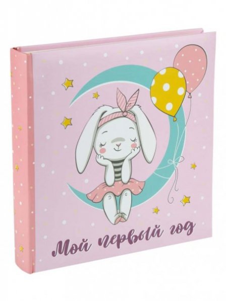 Фотоальбом «ЗАЙЧИК НА ЛУНЕ» на 120 фотографий (обложка из картона, листы из бумаги c кармашками-держателями из ПВХ для фото, с полями для записей), 30 листов / 3*22*22см арт.81305
