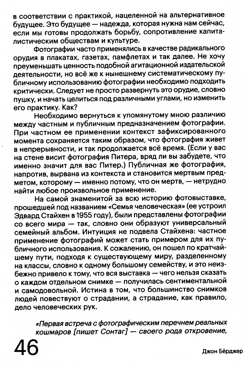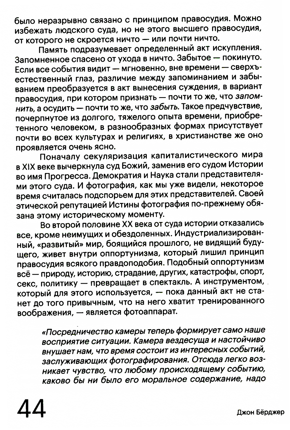 В книгу британского писателя и арт-критика Джона Бёрджера (1926-2017), специально составленную автором для российских читателей, вошли эссе разных лет, посвященные фотографии, принципам функционирования системы послевоенного искусства, а также некоторым важным фигурам культуры XX века, от Маяковского до Ле Корбюзье. Тексты, в основном написанные в 1960-х годах, содержат как реакцию на события того времени (смерть Че Гевары, выход книги Сьюзен Сонтаг «О фотографии»), так и более универсальные работы по теории и истории искусства («Момент кубизма», «Историческая функция музея»), которые и поныне не утратили своей актуальности.