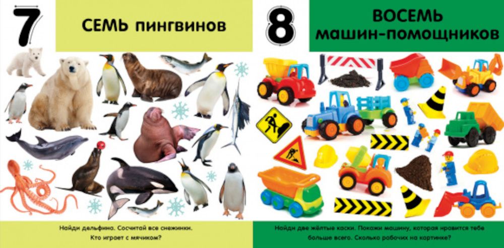 На каждом развороте фотокниги «Цифры» малыш будет знакомиться с новым числом, обводить пальчиком контуры крупных цифр по стрелкам, играть в «найди и покажи», отыскивая и считая заданные предметы и отвечать на вопросы. Кроме того, ребенок повторит формы и цвета. Благодаря большому формату издание вмещает на своих страницах множество предметов и займет ребенка надолго.| Издательство | Клевер-Медиа-Групп |