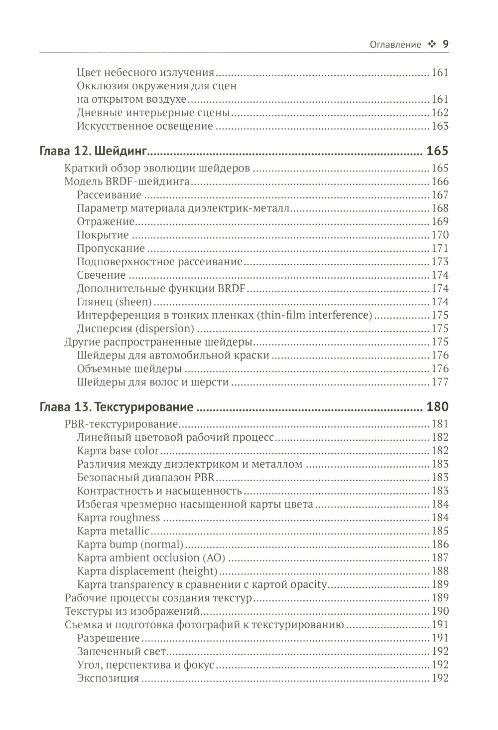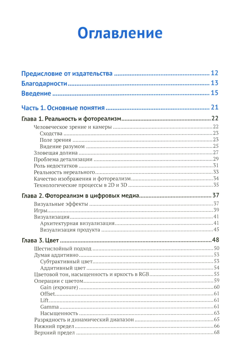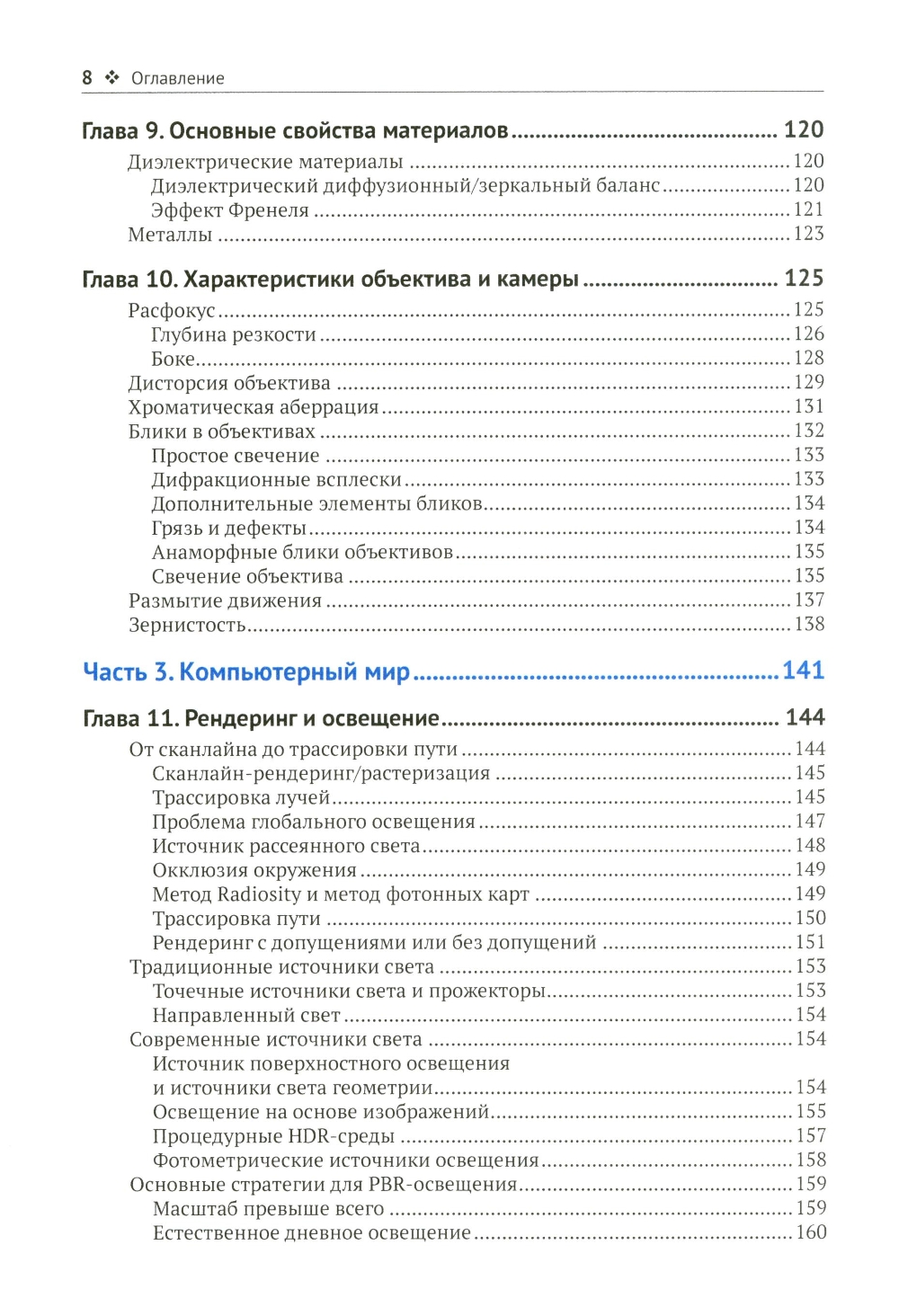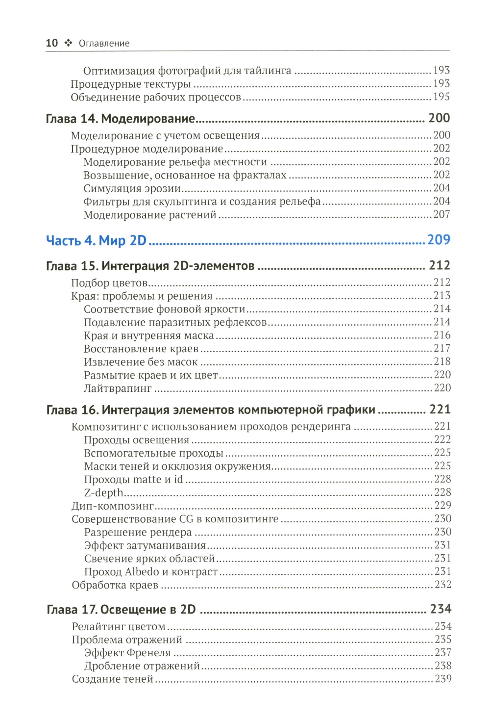 Глубокое изучение и понимание комплексного взаимодействия света, поверхностей, атмосферы и оптических эффектов, а также методы достижения этого в цифровой сфере, охватывающие как 3D, так и 2D-методы. Исследуя цвет, поведение света и поверхности, атмосферу, шейдинг, текстурирование, физически корректный рендеринг, процедурное моделирование, композитинг, мэтт-пейнтинг, эффекты объектива / камеры и многое другое, автор предлагает убедительное и элегантное руководство по достижению фотореализма в цифровых медиа и созданию изображений, неотличимых от реальных кадров. Основные темы книги: реализм и фотореализм; - цвет; - природа света и тени; - принципы работы объектива и камеры; - свойства поверхностей; - 3D-моделирование; - шейдинг и цифровое освещение; - физически корректный рендеринг; - композитинг CG-контента. Издание рекомендовано художникам по VFX, визуализации и играм, а также будет полезно режиссерам, архитекторам, дизайнерам и всем, кто хочет добиться убедительных и реалистичных визуальных эффектов в цифровых медиа.| Издательство | ДМК Пресс |