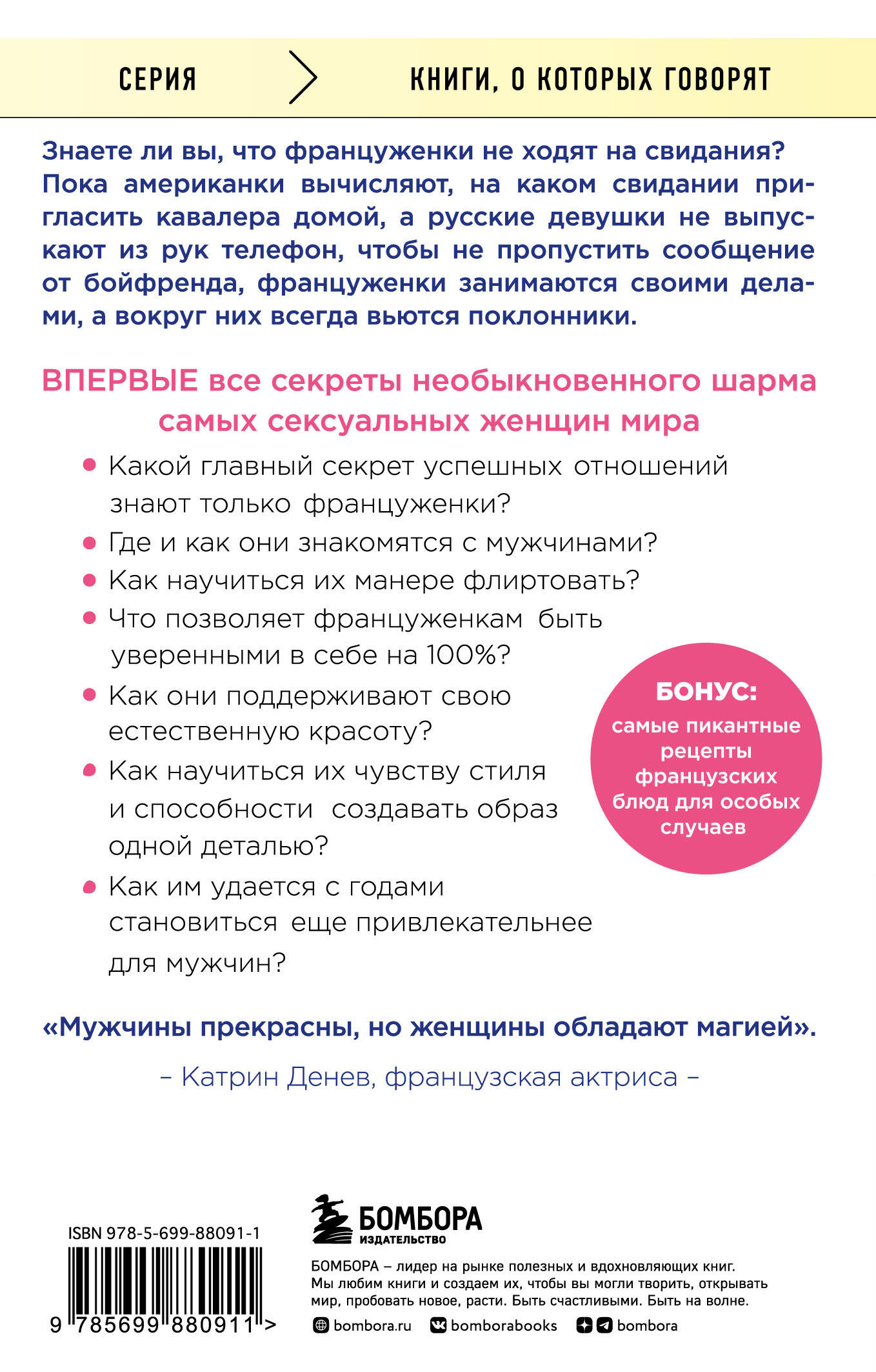 Цитата «Тайна француженки заключается в том, что ее мужчина знает: он может потерять эту женщину в любое мгновение». Почему мы решили издать эту книгу Всем известно, что русские женщины - самые красивые женщины в мире. Так почему же столько разных легенд слагают именно о француженках? Что в них такого особенного? Мы решили разобраться! Для кого Для женщин. Всех! Ключевые понятия Самые сексуальные женщины мира, секреты француженок, флиртовать как француженка, одеваться как француженка, французский шарм, французская кухня, французский поцелуй. Фишки книги В основном автор сравнивает француженок с американками. Русским читательницам будет познавательно узнать, куда нас может привести (в смысле межполовых отношений) подражание американской культуре. Еще фишки Изысканные рецепты французских блюд для самого убойного соблазнения.| Издательство | ООО "Издательство "Эксмо" |