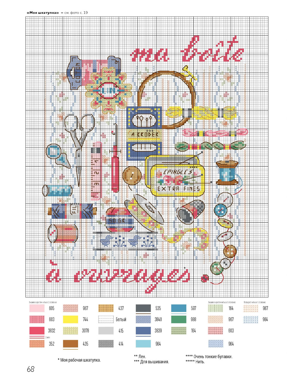 Эта книга прославленной французской вышивальщицы Вероник Ажинер посвящена рукоделию и всему, что с ним связано! В очаровательных дизайнах вы найдете милые вещицы из шкатулки любой вязальщицы, швеи или вышивальщицы, а также очаровательные мелочи для украшения интерьера, забавные сценки и мотивы для сезонного декора. Все дизайны Вероник традиционно отличают чисто французские изящество и элегантность. Вам остается лишь выбрать, каким сюжетом вы побалуете себя сегодня! Все отшивы из этого издания сопровождаются цвето-символьными схемами.| Издательство | Контэнт-Канц |