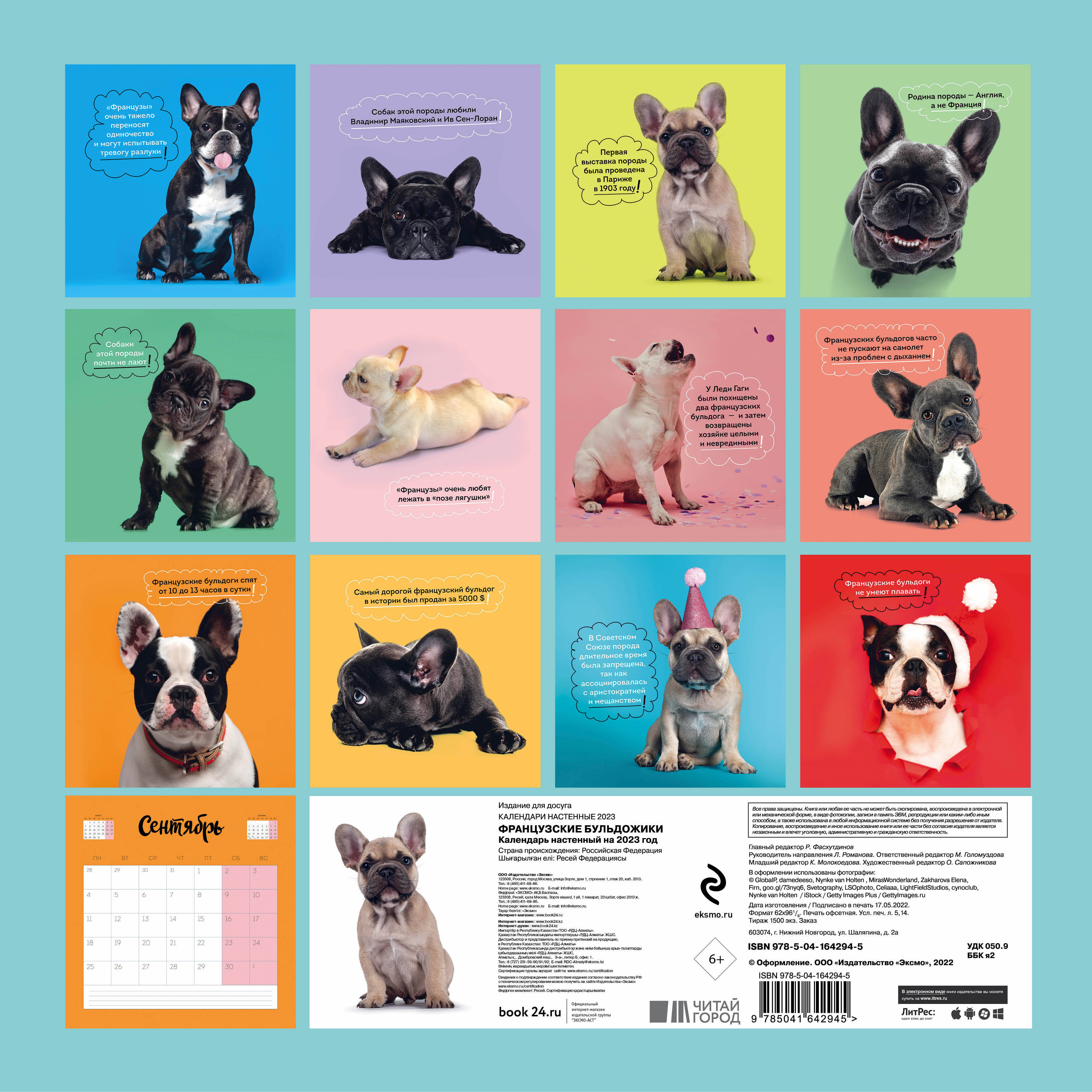 О серии: Наши настенные календари отличаются высоким качеством исполнения! Тщательно подобранные иллюстрации, напечатанные на глянцевой бумаге высочайшего качества, станут настоящим украшением дома, а в календарной сетке найдется место для ваших планов: большие клетки позволят делать записи и организовать свой год! В календаре также отмечены все государственные праздники. В серии настенных календарей издательства «ЭКСМО» каждый найдет тему по вкусу: великие художники, великолепные подборки с самыми знаменитыми произведениями искусства, легендарные кинематографические саги и игры, главные книжные авторы и бестселлеры, фотографии и иллюстрации любимых животных и многое-многое другое! О календаре: В этом календаре - фотографии милых и забавных французских бульдогов, а также интересные факты об этой породе. 2023 год - год французских бульдожиков! Для кого: Высокое качество полиграфического исполнения прекрасно дополняют яркие фотографии французских бульдожиков. Технические параметры: - Тип календаря - настенный перекидной. - Год - 2023. - Календарная сетка - с разбивкой по месяцам. - Вид скрепления - скрепка. - Ширина - 30 см. - Высота - 30 см. - Внутренний блок - мелованная бумага 150 г/м2. - Подложка - плотный гофрокартон для поддержания формы. - Индивидуальная упаковка в плотный целлофановый пакет.| Издательство | Эксмо |