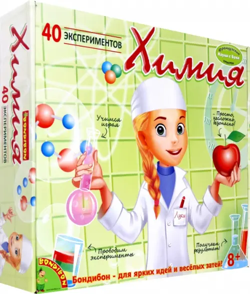 Этот химический набор помогает провести огромное количество опытов прямо на кухне. С оборудованием, которое идет в наборе, очень легко работать, а инструкции в нем яркие и понятные. Ты сможешь узнать, сколько кислорода в воздухе, какова плотность радуги, как сделать торнадо в бутылке, как создать свое водное искусство и еще 40 экспериментов! Для детей от 8 лет. В состав набора входят подставка для пробирок, 2 пластиковых пробирки с пробками, увеличительное стекло, пипетка, пластиковый лабораторный стакан, воронка, шкала уровня Ph, индикаторная Ph-бумага, фильтровальная бумага, соломинка, резинки, гидрокарбонат натрия, защитные очки, пинцет, пластилин, плакат, инструкция.
