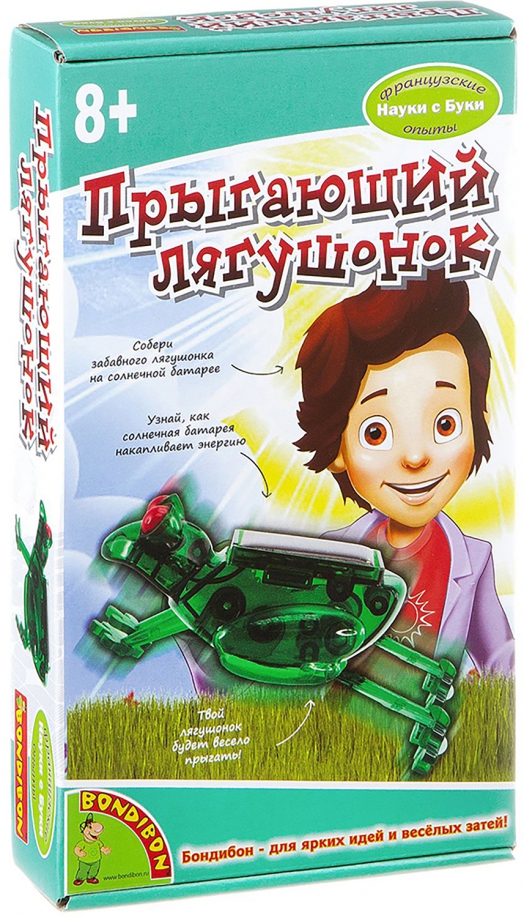 В набор входят: инструкция, солнечная батарея, детали для сбора модели лягушонка.