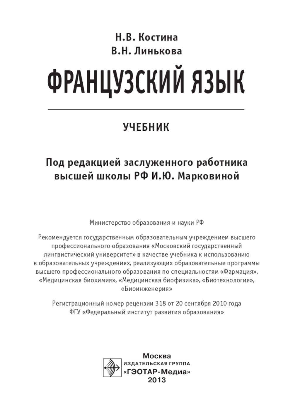 Аннотация: Французский язык: Учебник