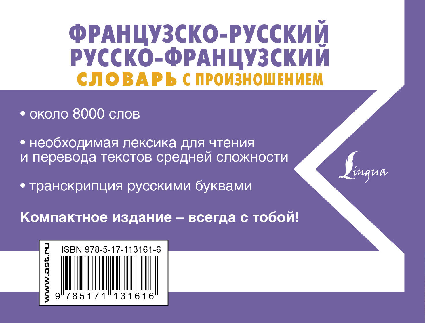 Книга из серии НОВЫЕ КАРМАННЫЕ СЛОВАРИ Подготовленный популярным автором многочисленных пособий по изучению иностранных языков С.А. Матвеевым «Французско-русский русско-французский словарь с произношением» содержит примерно 8000 самых необходимых слов. Каждое слово или словосочетание сопровождается произношением русскими буквами. При этом транскрипция французских слов дается и в русско-французской части. Это компактное издание, которое легко уместится в кармане, можно использовать как на уроках с преподавателем, так и дома при подготовке учебных заданий.| Издательство | ИЗДАТЕЛЬСТВО "АСТ" |