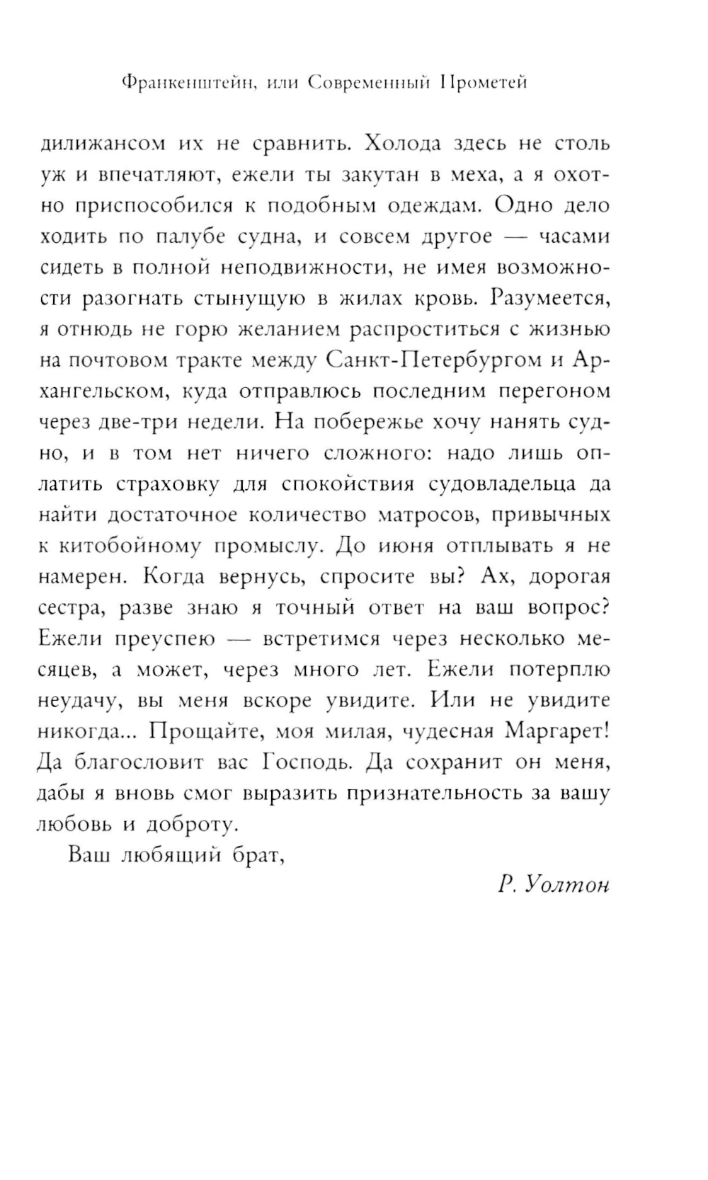 Один из главных готических романов мировой литературы, основополагающий текст научной фантастики, который заставил миллионы читателей размышлять о материях за пределами земной человеческой жизни. Молодой врач Виктор Франкенштейн, с детства увлеченный трудами Парацельса, ставит эксперименты по воскрешению. Одержимый желанием превзойти саму природу, сделать человека неуязвимым для болезней и смерти, он терпит неудачу за неудачей, пока одной унылой ноябрьской ночью существо на его столе, собранное из мертвой материи, не открывает глаза. В минуту триумфа гениальный алхимик и подумать не может, что стоит на пороге вовсе не всемирной славы, а ужасной катастрофы, которая вот-вот разразится - и разрушит жизни его близких, а заодно и его собственную.
