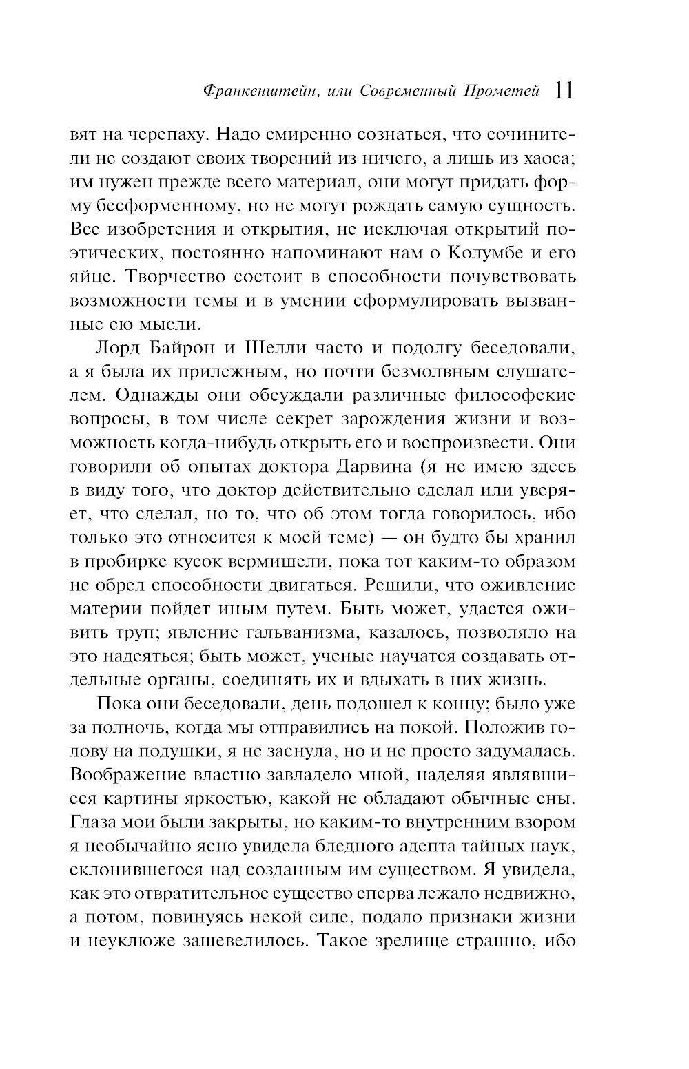 Это пугающая и мрачная история о гениальном ученом и его страшном творении. Виктор Франкенштейн постиг тайну зарождения жизни и научился оживлять безжизненную материю. Он мечтал победить смерть и создал монстра из частей трупов. Однако стремление к славе и признанию привело к ужасающе трагическим последствиям... Замысел и первые эпизоды романа «Франкенштейн, или Современный Прометей» (1818) возникли как импровизация на заданную тему - сочинение страшных историй, инициированное лордом Байроном на швейцарской вилле Диодати летом 1816 года, а образ чудовища, сотворенного главным героем, явился автору - восемнадцатилетней англичанке Мэри Шелли - в ночном кошмаре. Однако, несмотря на юный возраст начинающей писательницы и почти случайные обстоятельства создания книги, «Франкенштейну» суждено было стать событием национальной и мировой литературы. Классика научно-фантастической прозы, шедевр романтической готики, оригинальный философский роман, источник знаковых образов современной культурной мифологии - таков далеко не полный ряд расхожих определений этого впечатляющего литературного дебюта. Трагический сюжет, придуманный автором, породил множество подражаний, переложений и продолжений - в художественной прозе, драматургии, театре и, разумеется, кинематографе. Настоящее издание подробно комментировано. В ноябре 2025 на экране выходит фильм Гильермо дель Торо «Франкенштейн», а в 2026 нас ждет еще одна премьера - фильм «Невеста» Мэгги Джилленхол, ремейк классического кинофильма «Невеста Франкенштейна» 1935 года. Оба фильма сняты по мотивам произведения Мэри Шелли.| Издательство | Эксмо |