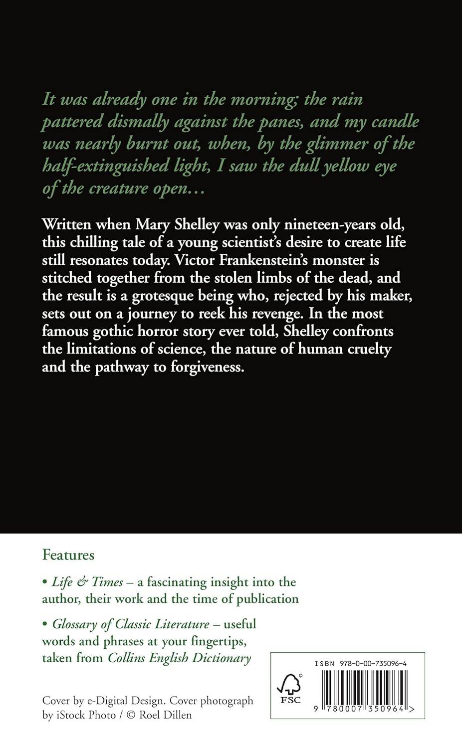 Frankenstein (Mary Shelly) Victor Frankenstein's monster is stitched together from the limbs of the dead, taken from 'the dissecting room and the slaughter-house'. The result is a grotesque being who, rejected by his maker and starved of human companionship, sets out on a journey to seek his revenge. In the most famous gothic horror story ever told, Shelley confronts the limitations of science, the nature of human cruelty and the pathway to forgiveness. Begun when Mary Shelley was only eighteen years old and published two years later, this chilling tale of a young scientist's desire to create life - and the consequences of that creation - still resonate today. Франкенштейн (Мэри Шелли) Чудовище Виктора Франкенштейна сшито из конечностей мертвецов, взятых из "прозекторской и бойни". Результатом является гротескное существо, которое, отвергнутое своим создателем и жаждущее человеческого общения, отправляется в путешествие, чтобы отомстить. В самой известной готической истории ужасов, когда-либо рассказанной, Шелли сталкивается с ограниченностью науки, природой человеческой жестокости и путем к прощению. Начавшаяся, когда Мэри Шелли было всего восемнадцать лет, и опубликованная два года спустя, эта пугающая история о желании молодого ученого создать жизнь - и последствиях этого создания - до сих пор находит отклик.| Издательство | Harper Collins Publishers Ltd |