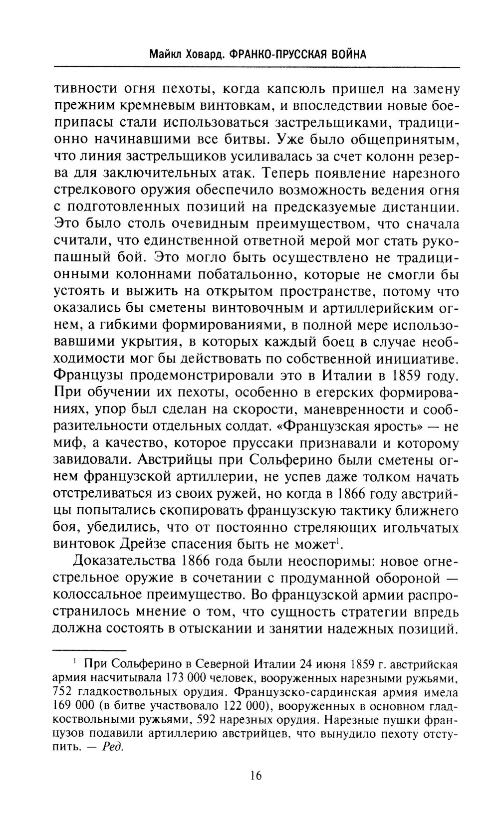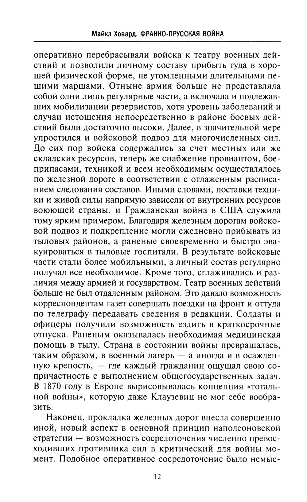 Британский военный историк, профессор Оксфордского университета посвятил свой труд военному конфликту между империей Наполеона III и германскими государствами во главе с Пруссией. Война, спровоцированная прусским канцлером О. Бисмарком и формально начатая Наполеоном III, закончилась поражением и крахом Франции, в результате чего Пруссия сумела преобразовать Северогерманский союз в единую Германскую империю. Работая над книгой, автор исследовал и привлек колоссальный объем научного и документального материала и предложил свой взгляд на причины и последствия этой войны. Ховард проанализировал состояние войск противников, включая структуру, вооружение и технику, дал яркое описание сражений и представил галерею портретов ключевых фигур событий, среди них Вильгельм I, Бисмарк, Леопольд Гогенцоллерн, Бенедетти и другие. В заключение ученый отмечает, что великая победа Германии впоследствии обернулась бедствием, как для нее самой, так и для остального мира.| Издательство | Центрполиграф |