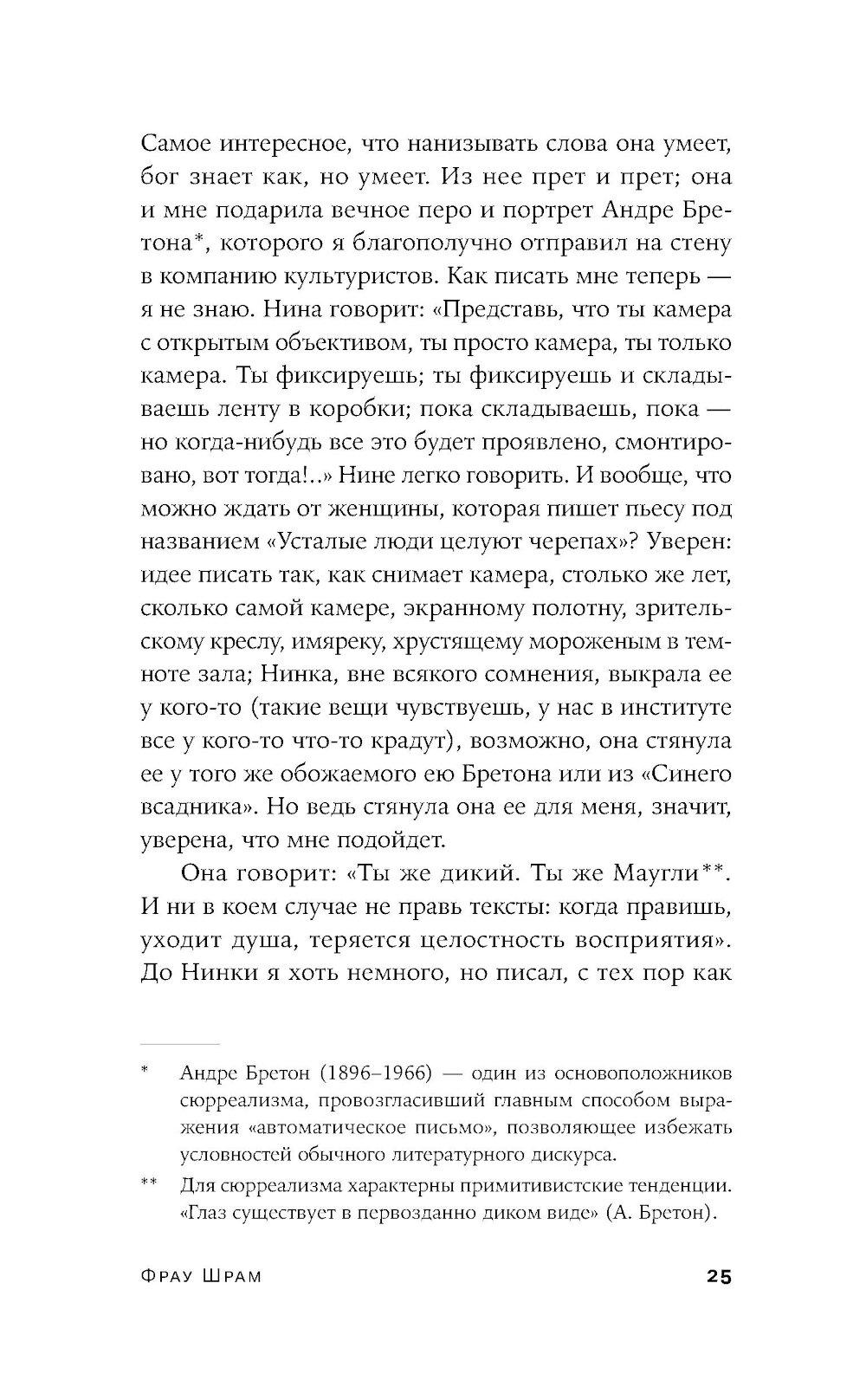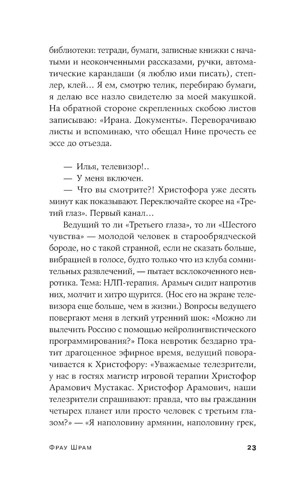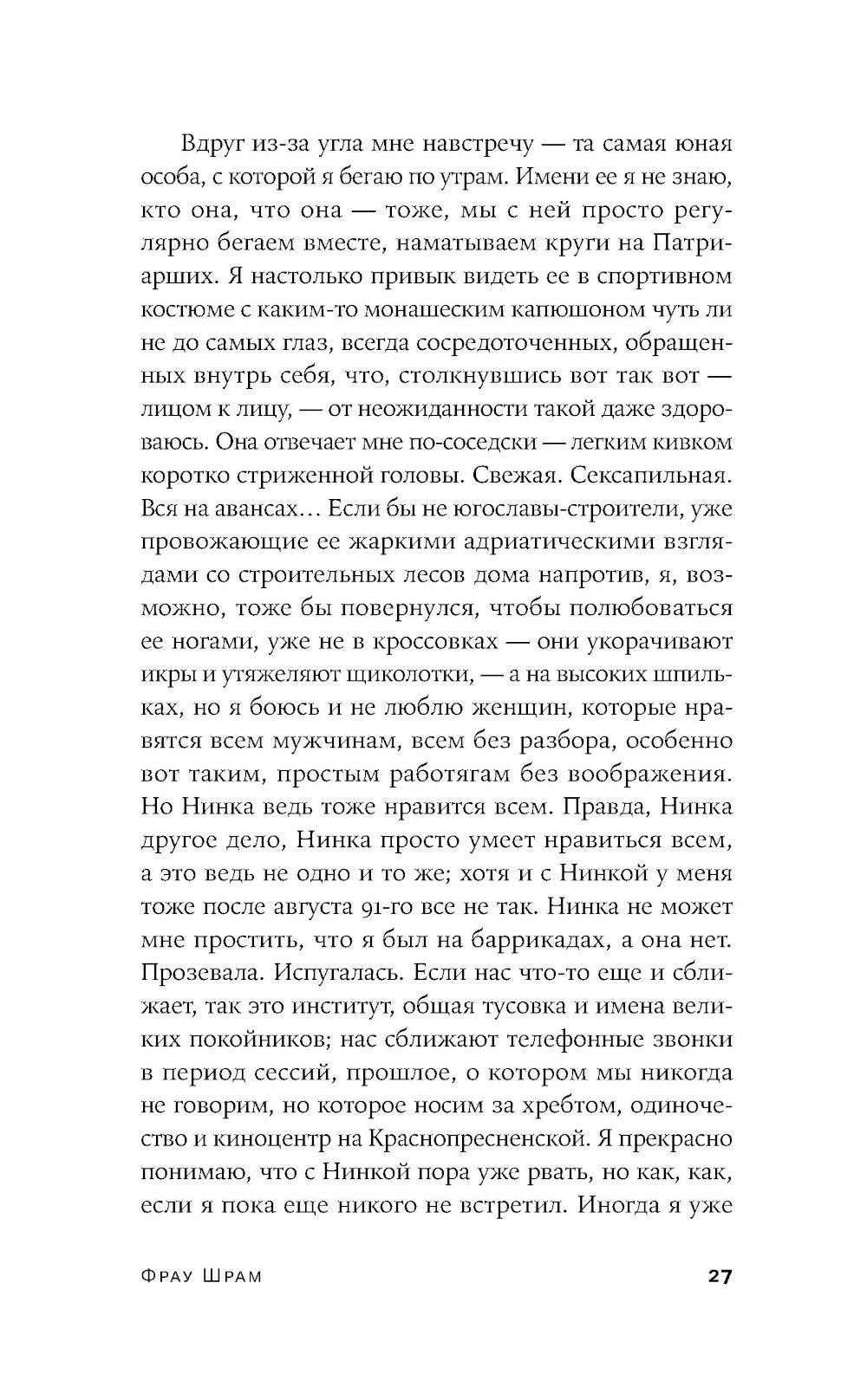 СОДЕРЖИТ ИНФОРМАЦИЮ О НАРКОТИЧЕСКИХ ИЛИ ПСИХОТРОПНЫХ ВЕЩЕСТВАХ, УПОТРЕБЛЕНИЕ КОТОРЫХ ОПАСНО ДЛЯ ЗДОРОВЬЯ. ИХ НЕЗАКОННЫЙ ОБОРОТ ВЛЕЧЕТ УГОЛОВНУЮ ОТВЕТСТВЕННОСТЬ. Москва, девяностые. Студент московского Литинститута Илья едет в родной Баку, чтобы повидаться с матерью и разобраться в себе. На фоне политических и социальных потрясений и личного кризиса у Ильи случается роман, ставший точкой невозврата в его собственной жизни. «Фрау Шрам» - история о прошлом и настоящем, о любви и долге, о горькой романтике «каникул» в стране, где еще теплятся отголоски империи и зарождаются новые идентичности. Голос этого текста - исключительно мужской, прямой, удивляющий откровенностью, при этом герой тонко чувствует происходящее и рефлексирует, сопоставляя собственную жизнь с перспективной Москвой и ретроспективным Баку, в декорациях которых разворачиваются события. Тема социальных этажей, личной свободы и выбора становится метафорой того, как живут и меняются люди в переломные времена.| Издательство | Альпина Паблишер |