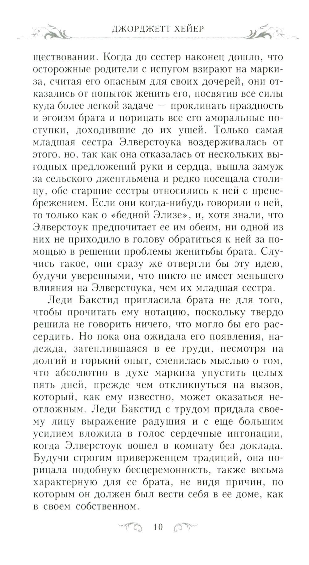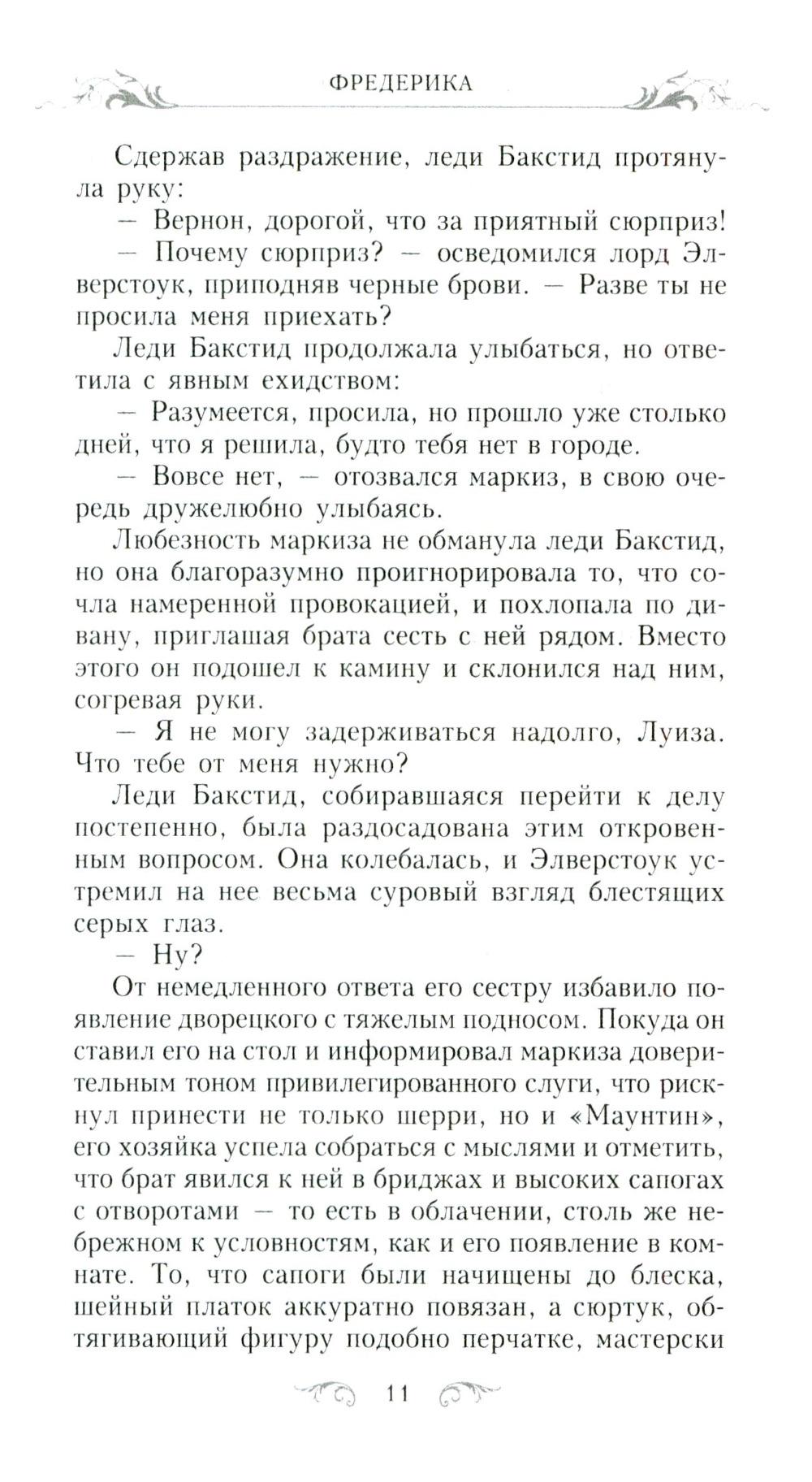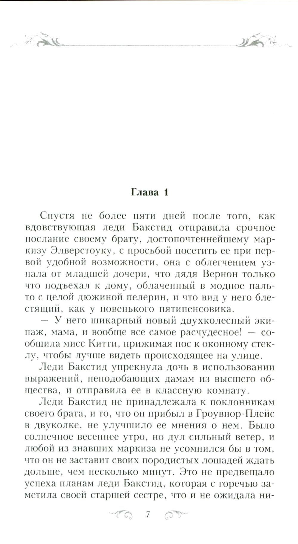 Маркиз Вернон Элверстоук не привык потакать прихотям родни, лишь Фредерике Мерривилл, дочери своего дальнего родственника, он не смог отказать. Высокомерный маркиз с неохотой соглашается выполнить просьбу девушки ввести ее младшую сестру в высшее общество. Но вскоре замечает, что его влечет к Фредерике - этой провинциалке, так не похожей на привычных ему светских львиц...| Издательство | Центрполиграф |