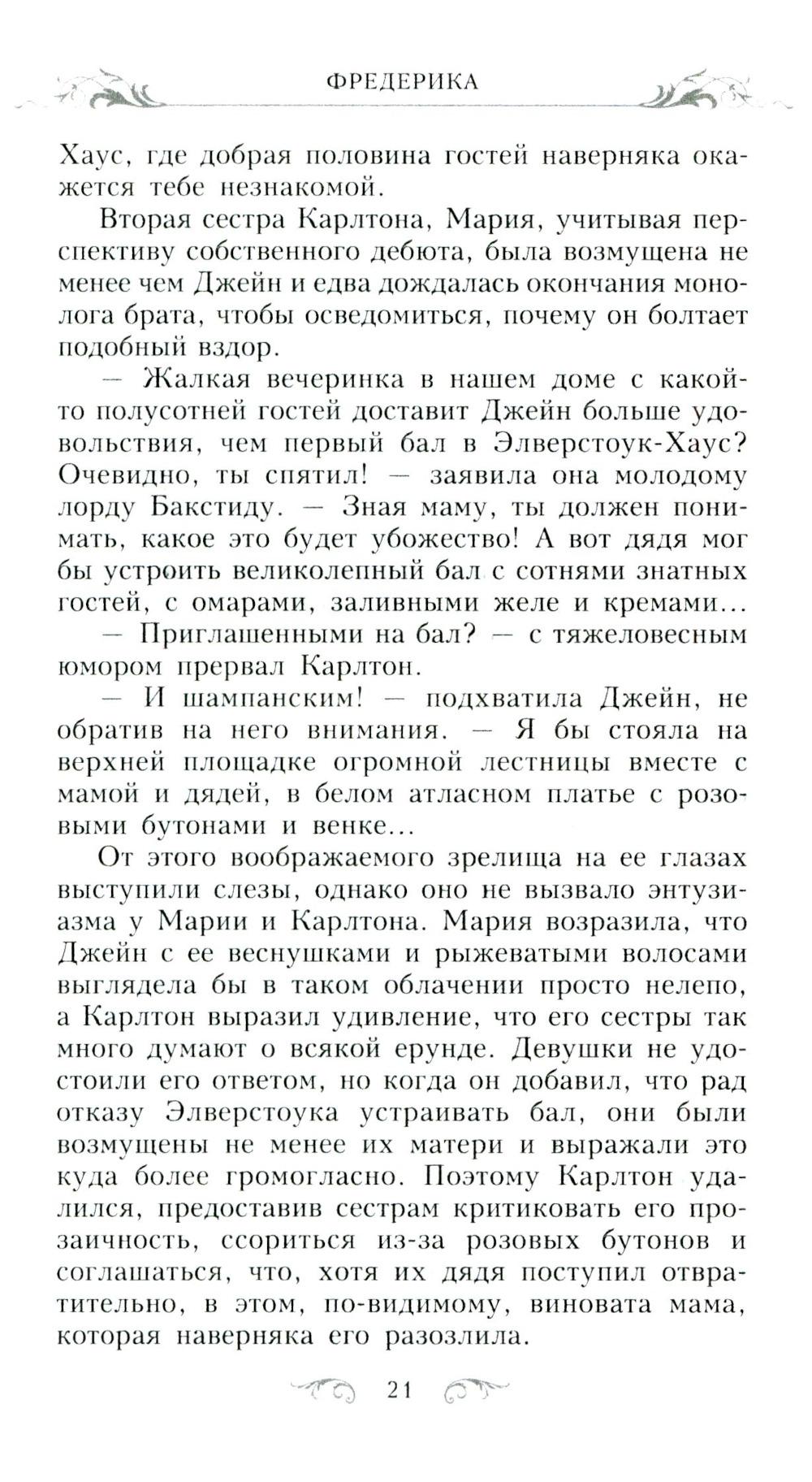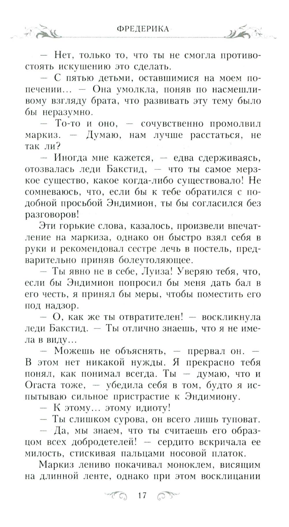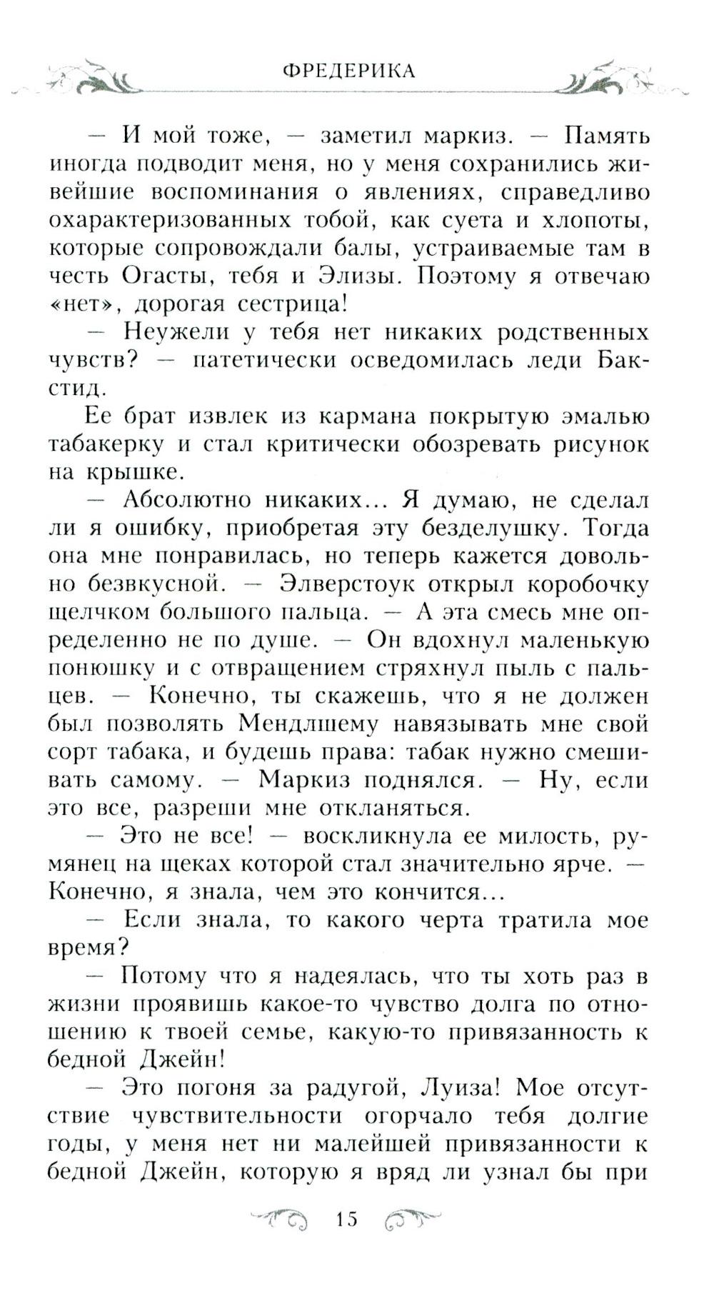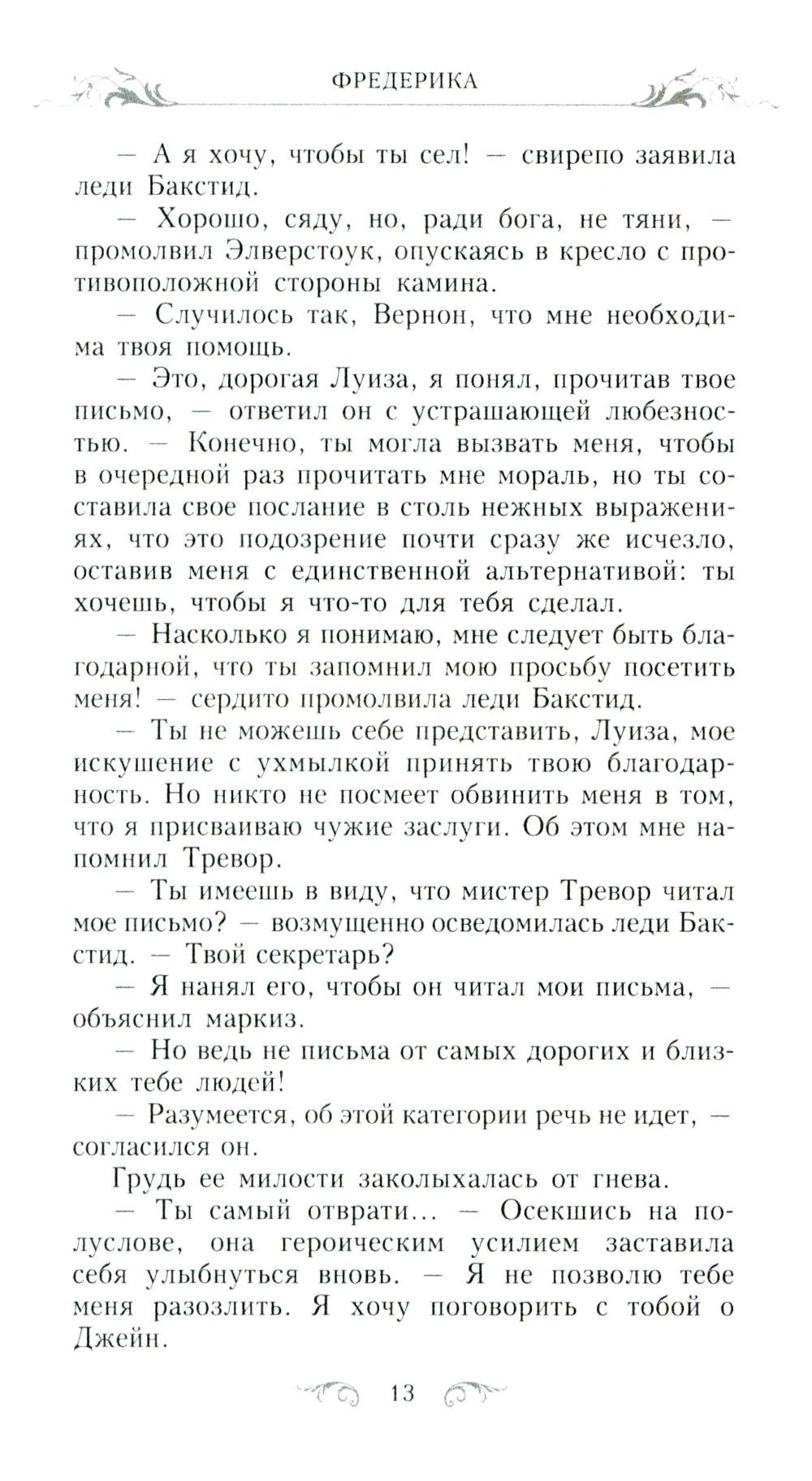 Маркиз Вернон Элверстоук не привык потакать прихотям родни, лишь Фредерике Мерривилл, дочери своего дальнего родственника, он не смог отказать. Высокомерный маркиз с неохотой соглашается выполнить просьбу девушки ввести ее младшую сестру в высшее общество. Но вскоре замечает, что его влечет к Фредерике - этой провинциалке, так не похожей на привычных ему светских львиц...| Издательство | Центрполиграф |