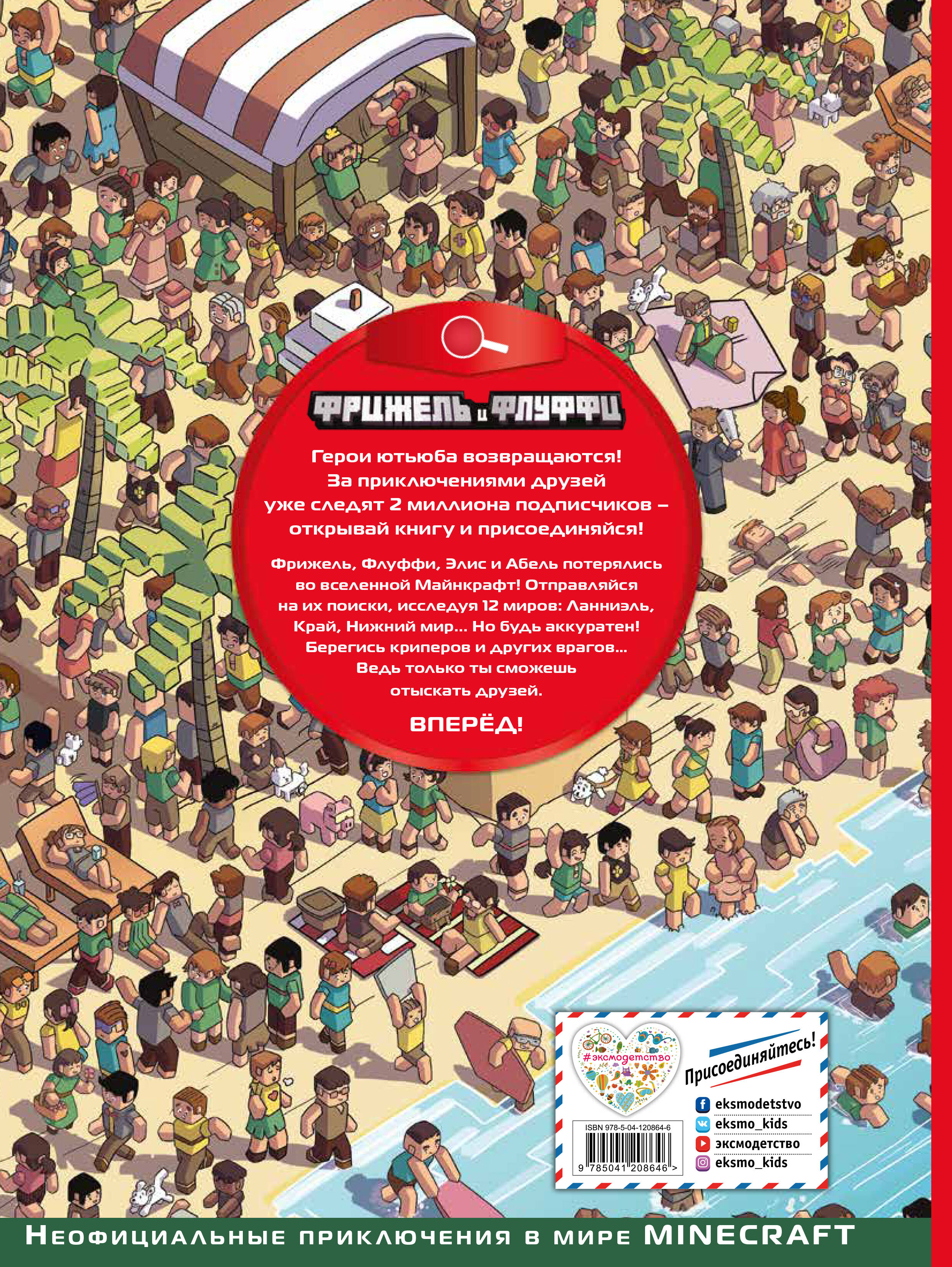 Оригинальная находилка по миру Майнкрафт от Фрижеля - ютубера по игре, у которого более 2 миллионов подписчиков! Яркие иллюстрации, любимые герои и увлекательные поиски понравятся каждому юному фанату Майнкрафт.
